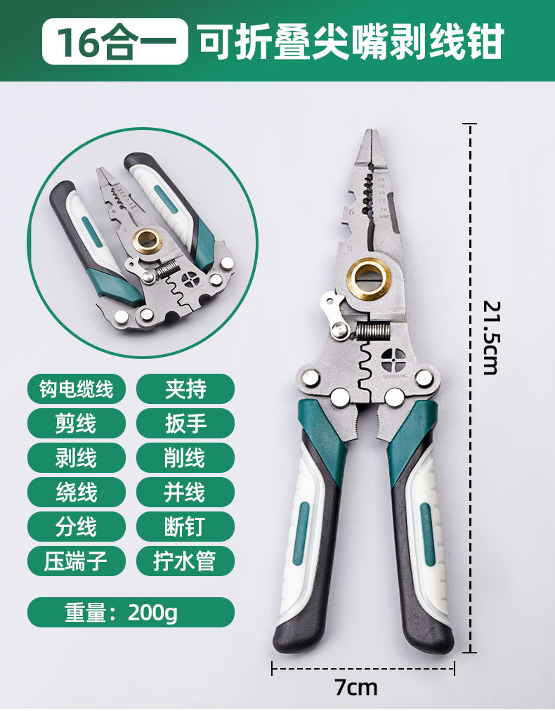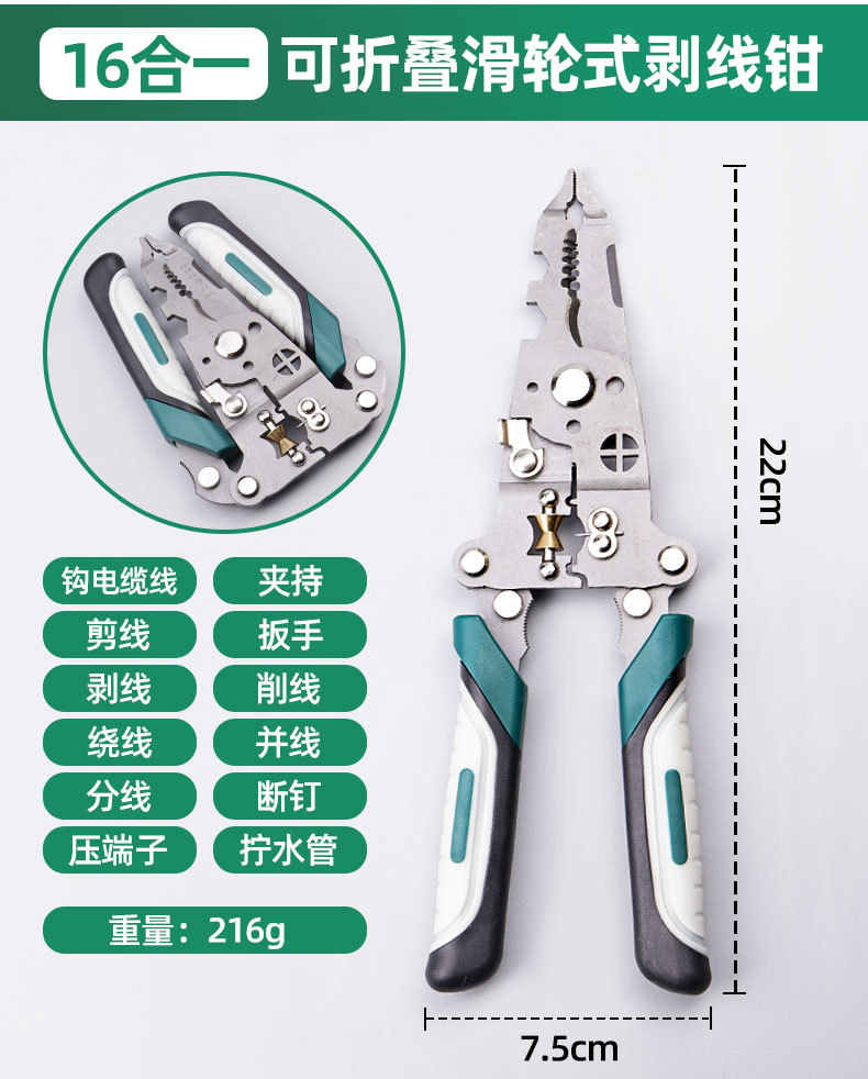| Especificaciones y modelos | 992, pinzas de pelado de poleas plegables de 16 en 1, 0,22 kg, 993, pinzas de pelado de punta plegable de 16 en 1, 0,2 kg |