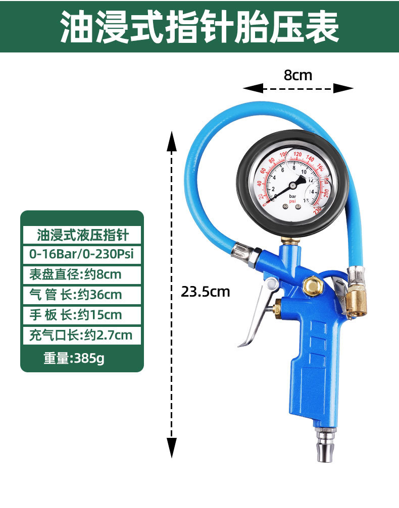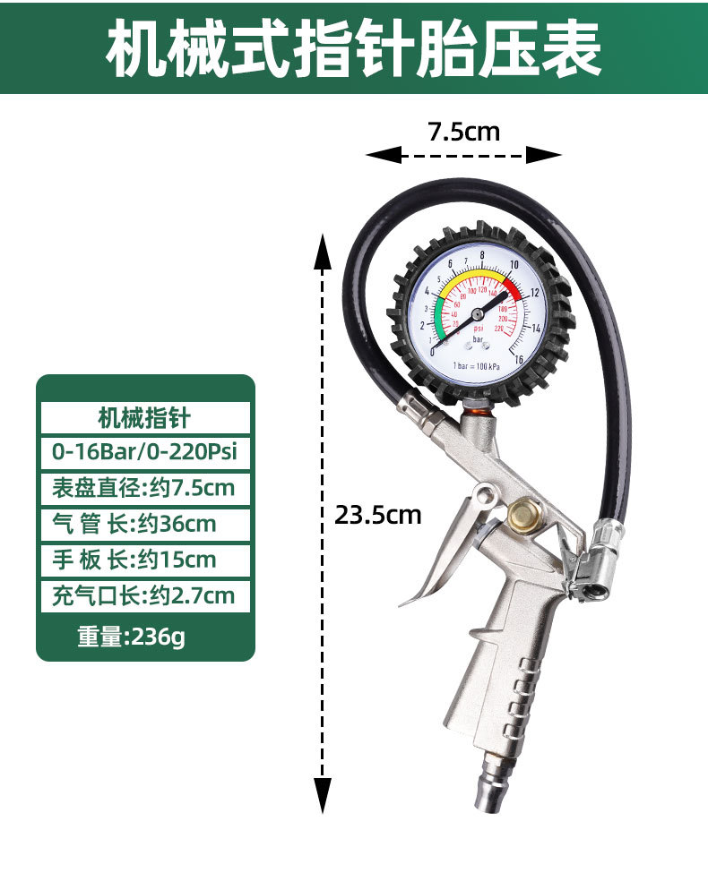 | Modelo | 988, medidor de presión de neumáticos de puntero mecánico, 0,24 kg, 989, medidor de presión de neumáticos de puntero sumergido en aceite, 0,39 kg |