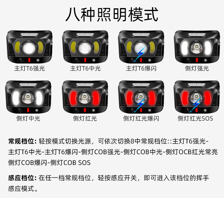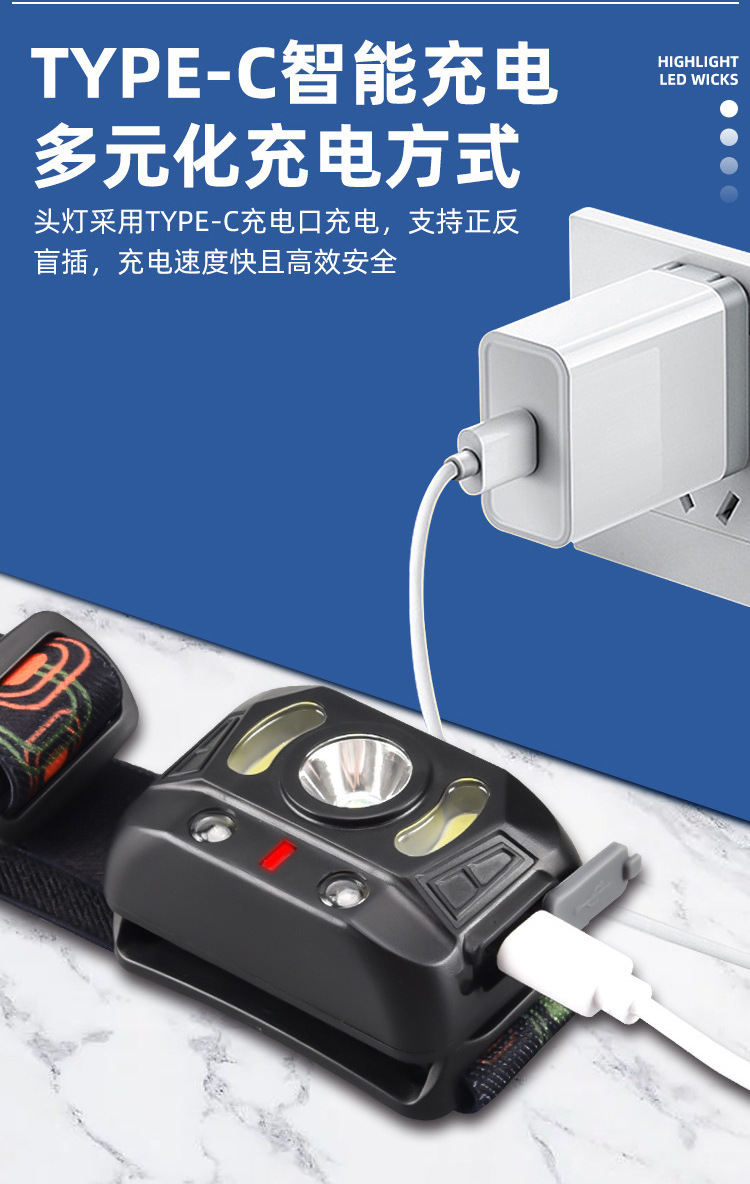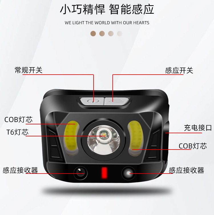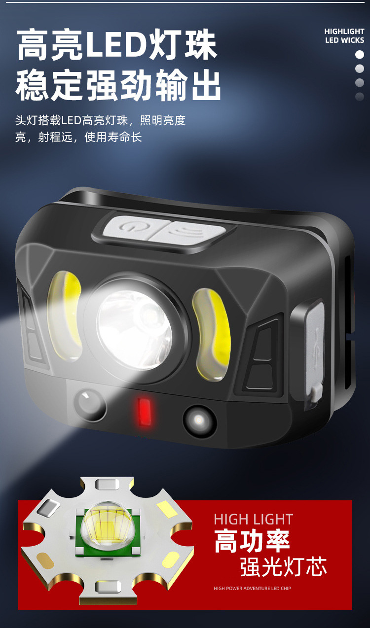 Transfronterizos inteligentes inducción luz alta luz al aire libre led faro portátil recargable luz de pesca nocturna luz de pesca nocturna luz de pesca nocturna al por mayor