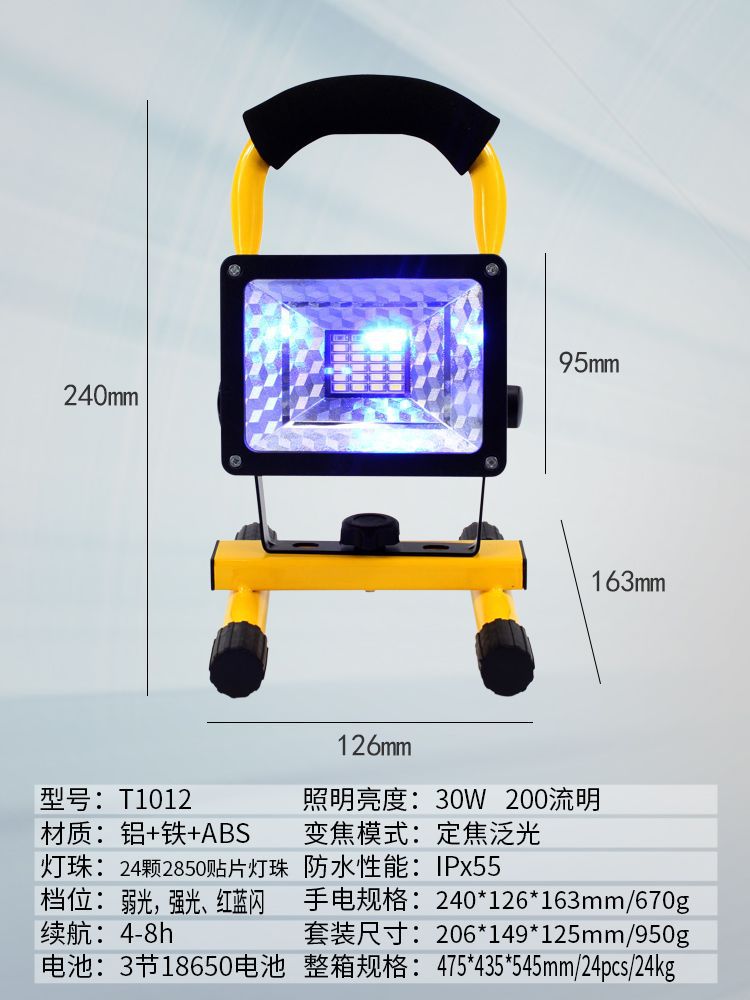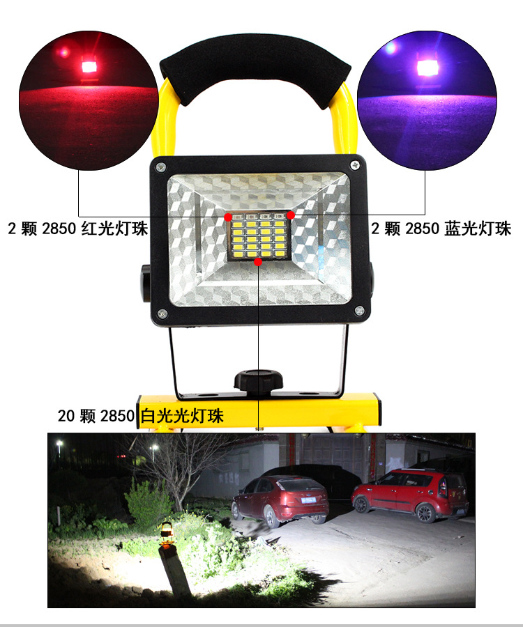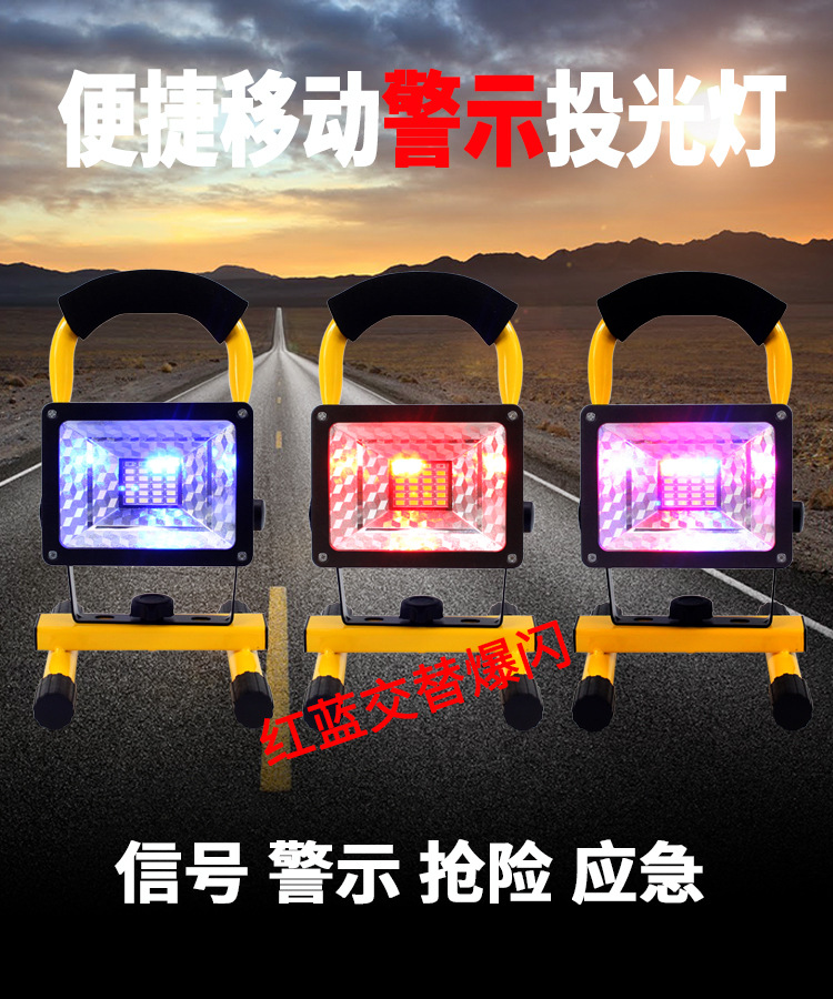 Luz de inundación móvil portátil al aire libre 30W reflector de carga iluminación de emergencia rojo y azul luz de advertencia señal de socorro