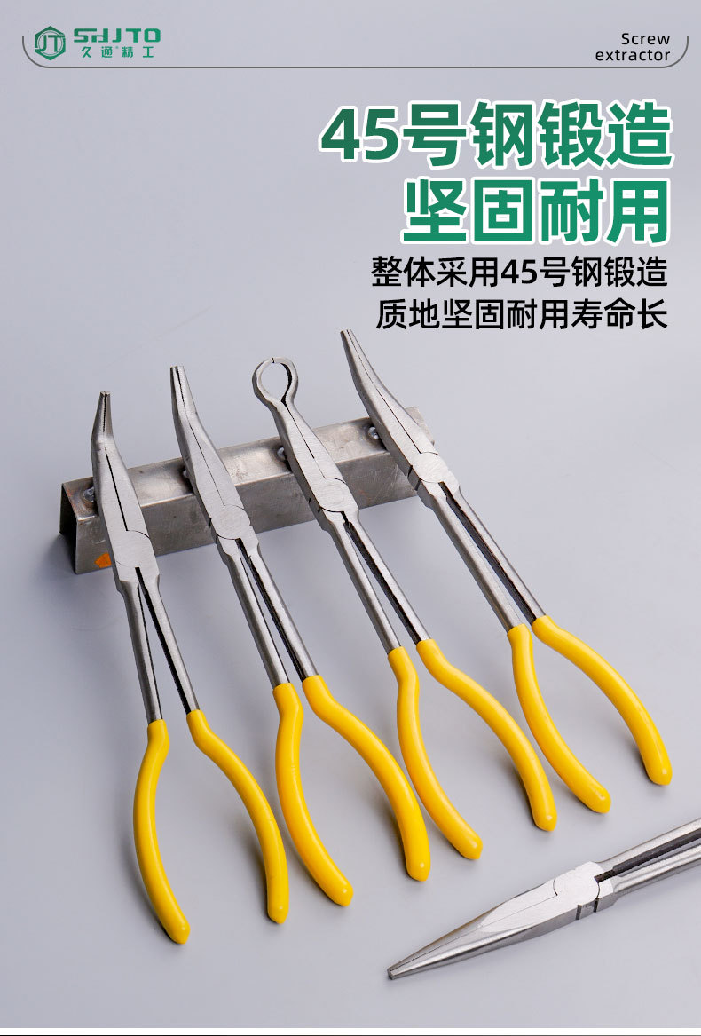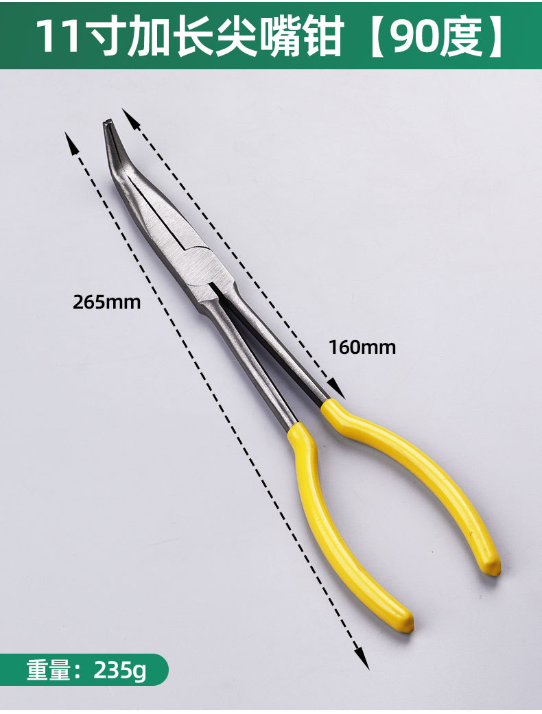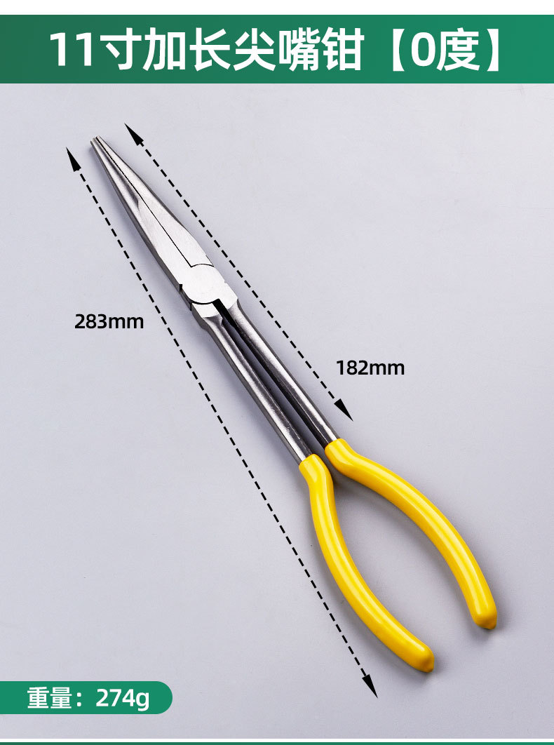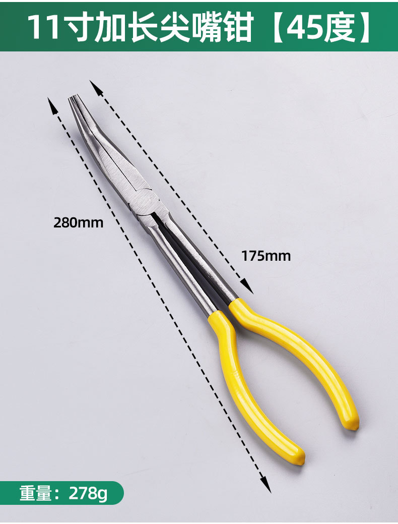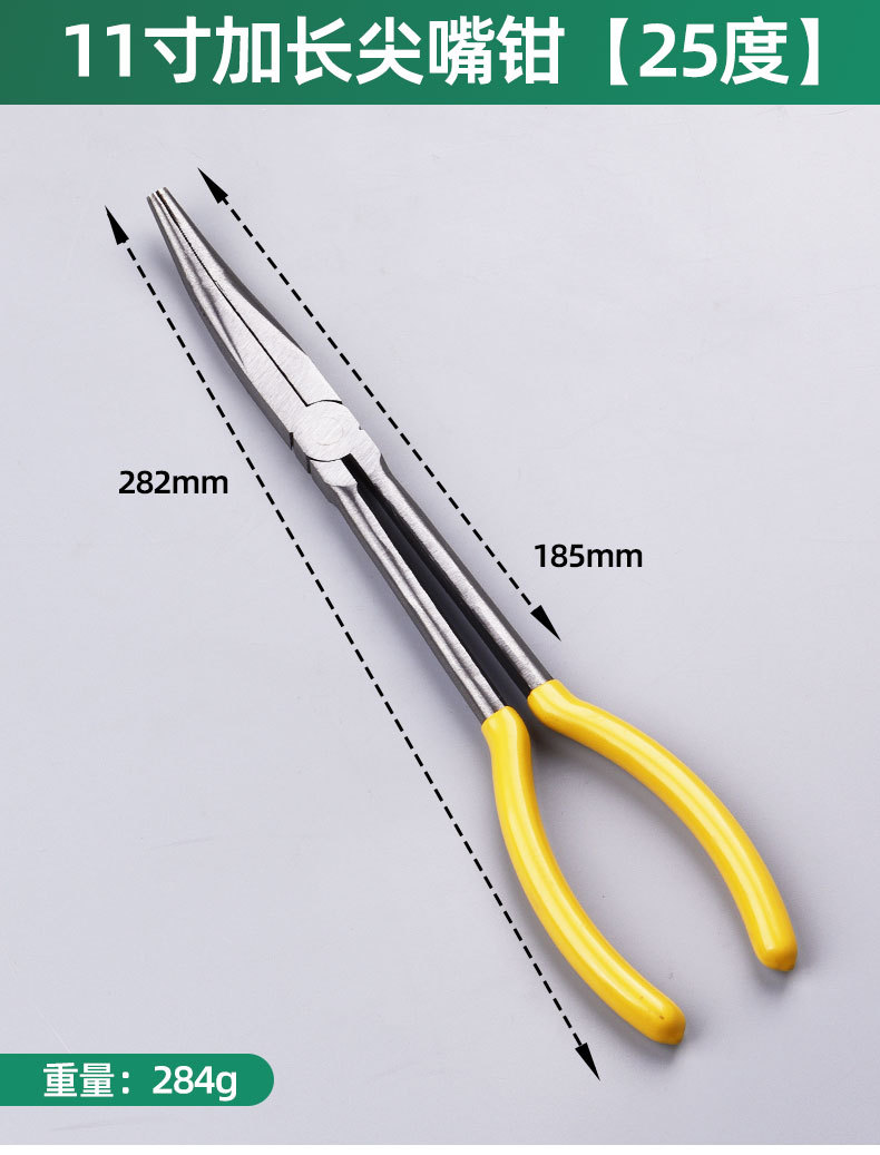 Ventas de fabricantes de 11 pulgadas de mango alargado 280mm punta de pinza de boca curva, pinza de boca larga