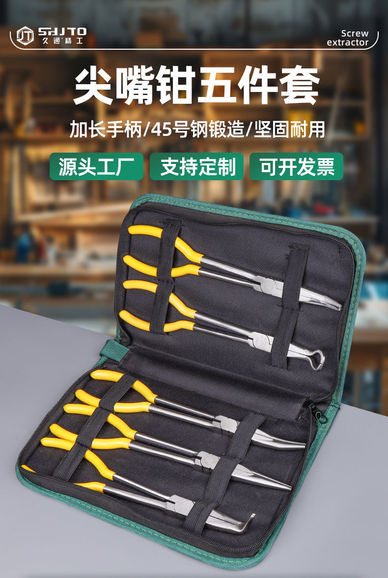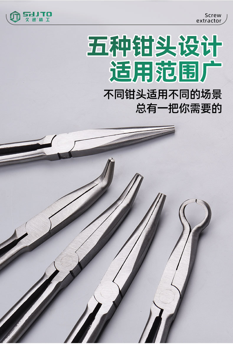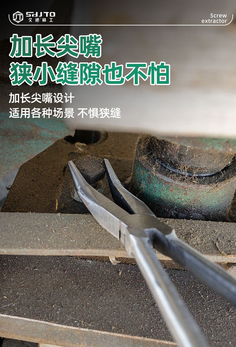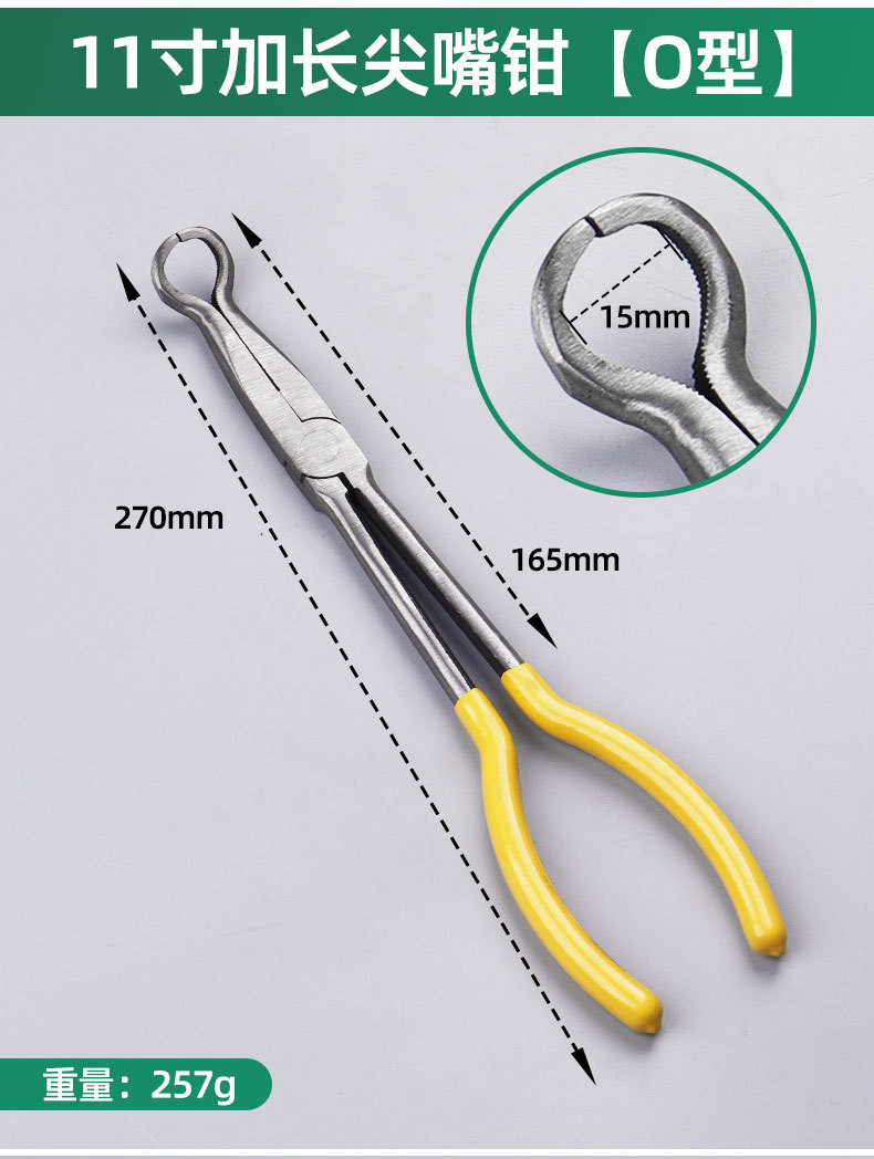 Ventas de fabricantes de 11 pulgadas de mango alargado 280mm punta de pinza de boca curva, pinza de boca larga
