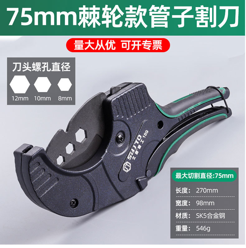 | Modelo | 187, cuchillo de corte de tubo jiutong de 46 mm, 0,27 kg, 188, cuchillo de corte de tubo jiutong de 50 mm, 0,3 kg, 189, cuchillo de corte de tubo jiutong de 75 mm, 0,55 kg, 614, cuchillo de corte grande de 42 mm, 0,45 kg |