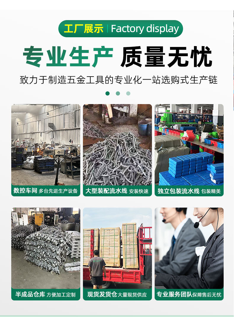 | Modelo | 497, pala pequeña (cabeza única), 100 / pieza, 0.24kg, 498, cabeza blanca pequeña (cabeza única), 100 / pieza, 0.32kg, 499, cabeza pequeña de pala de hielo (cabeza única), 100 / pieza, 0.36kg, 500, cabeza grande de pala de hielo (cabeza única), 70 / pieza, 0.44kg, 501, pala de hielo de Hebei (cabeza única), 60 / pieza, 0.49kg, 502, 21cm de ángulo de hierro (cabeza única), 80 / pieza, 503, 23cm de ángulo de hierro (una sola cabeza), 80 / pieza, 504, 26cm de ángulo de hierro (una sola cabeza), 70 / pieza, 505, 28cm de ángulo de hierro (una sola cabeza), 70 / pieza, 506, 30cm de ángulo de hierro (una sola cabeza), 70 / pieza, 507, una pala de hielo de 13cm, 20 / pieza, 508, una pala de hielo de 15cm, 20 / pieza, 509, una pala de hielo de punta pequeña 8cm, 20 / pieza, 510, 32mm de barra roja, 20 / pieza, 511, pala de hielo de boca rápida de barra roja, 20 / pieza, 512, cabeza negra pequeña de acero de manganeso (4.5), 20 / pieza, 513, cabeza galvanizada de acero de manganeso (4.5), 20 / pieza |