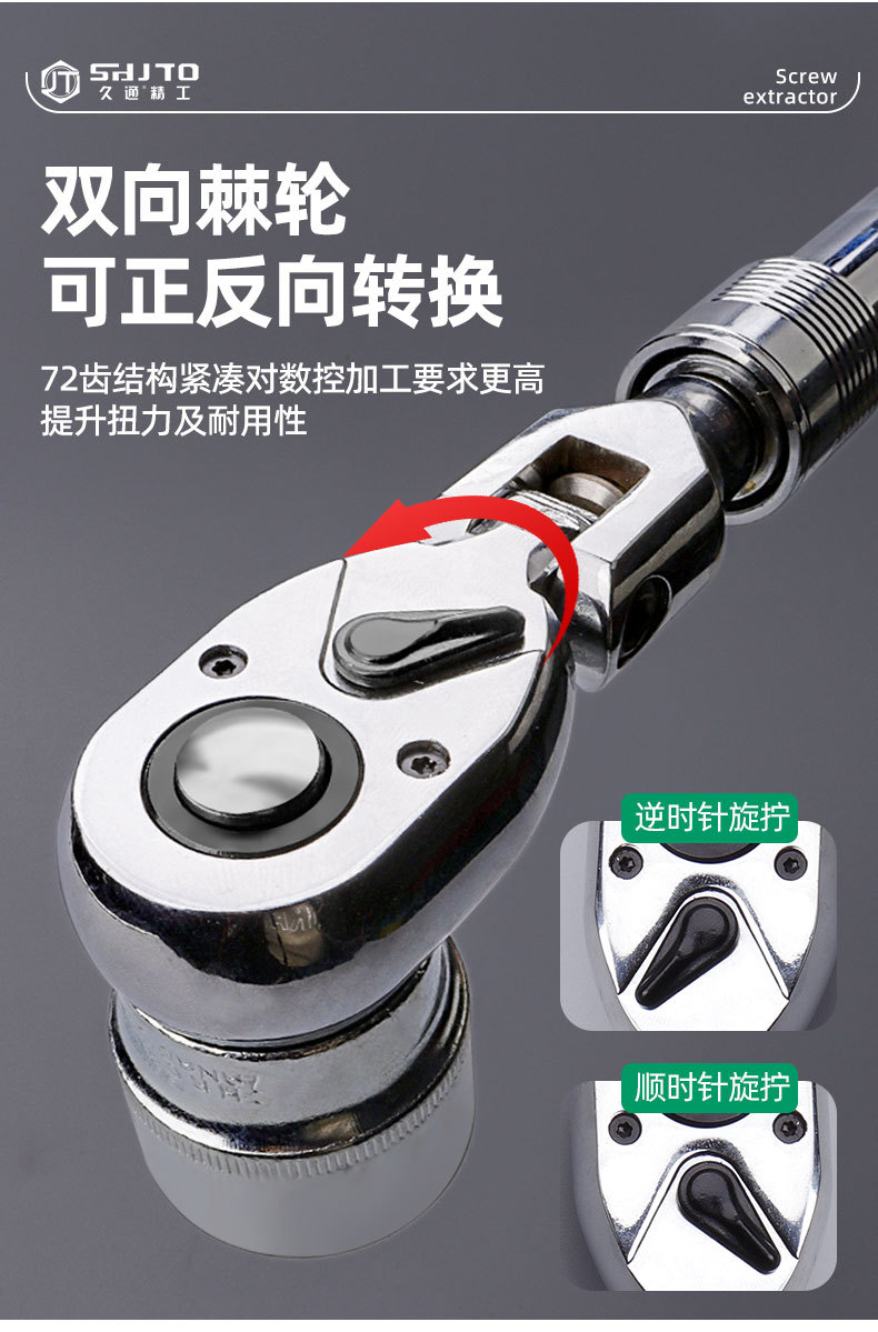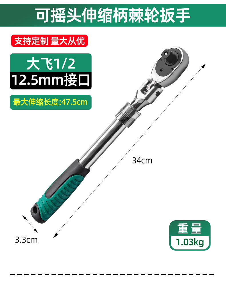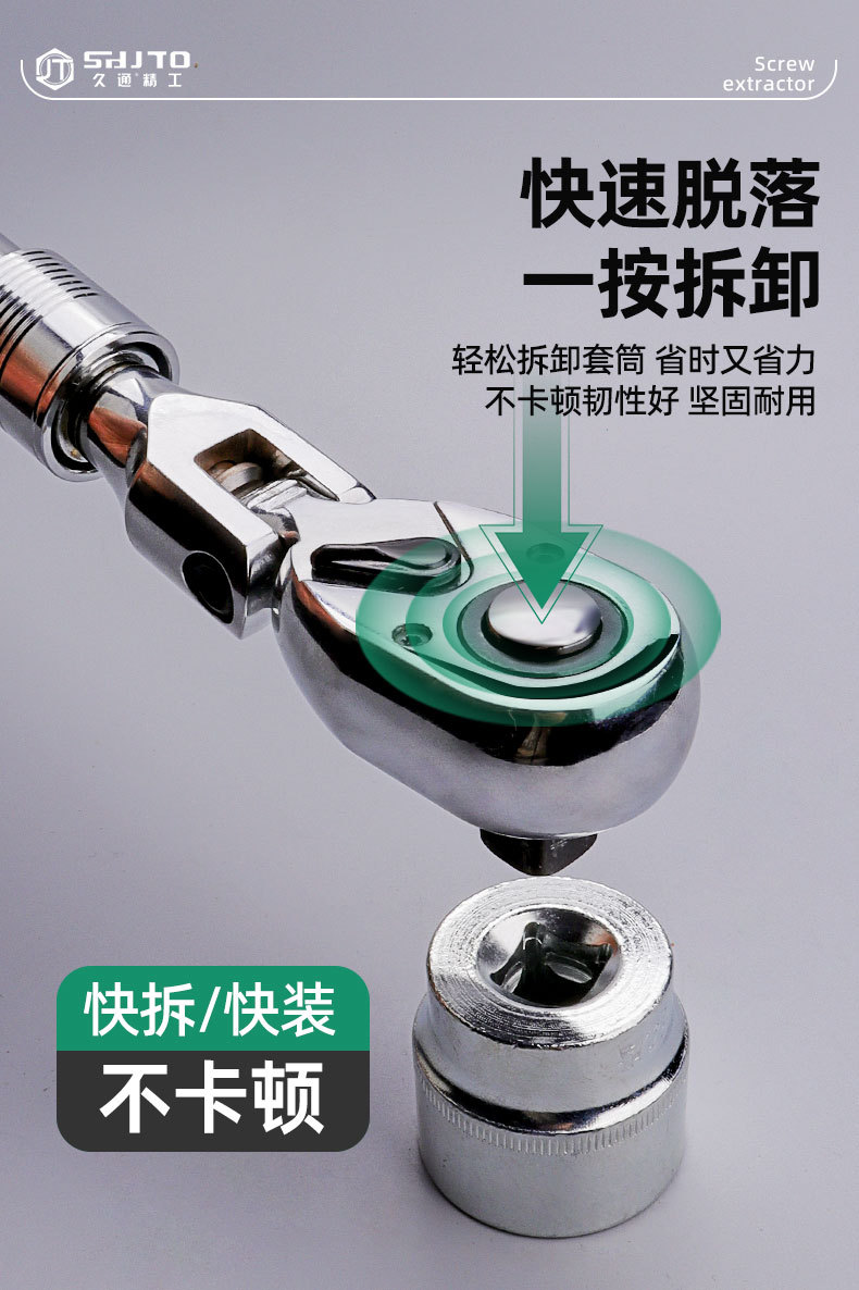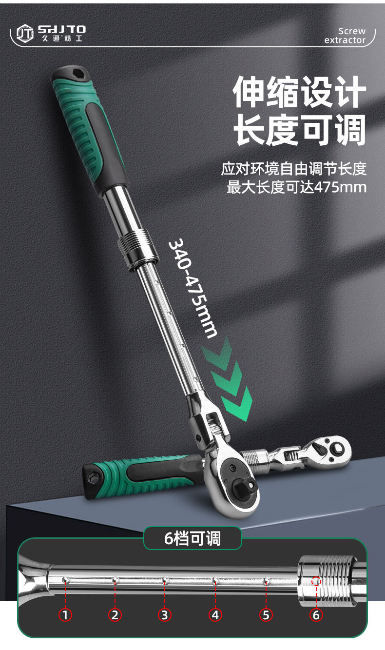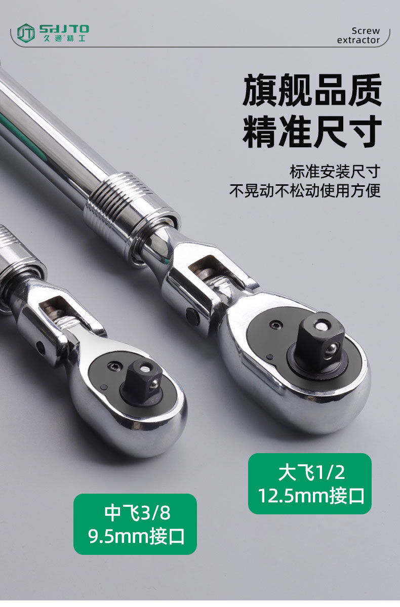 Fábrica al por mayor cabeza de agitación rápida de trinquete llave de manga 1 / 2 pulgada de mango recto llave rápida 72 dientes trinquete telescópico