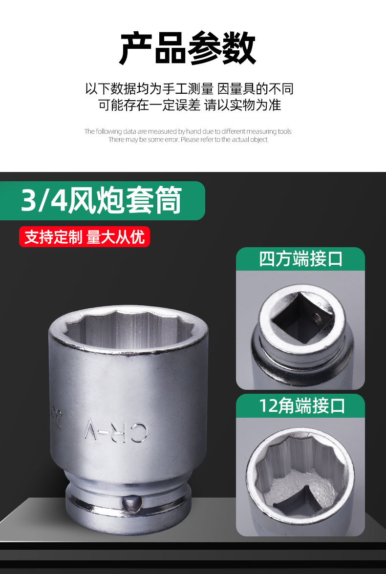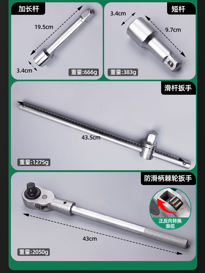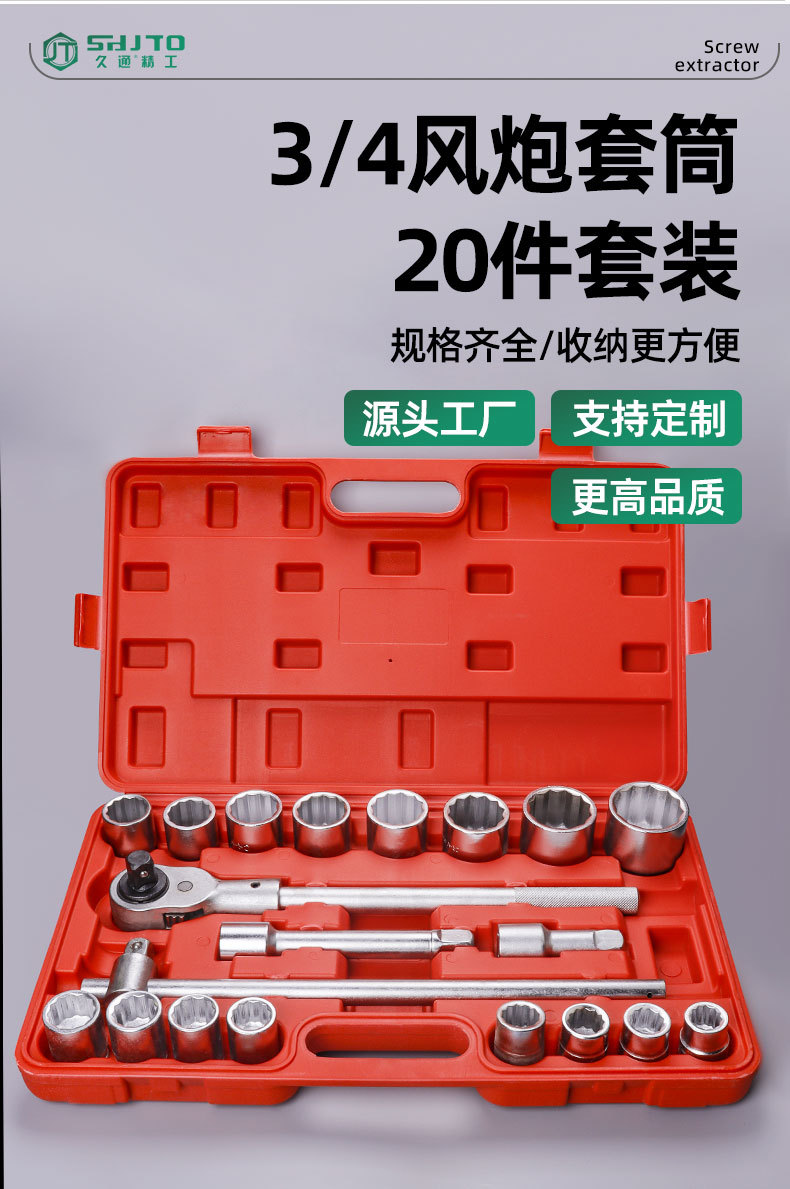 3/4 "21 piezas 12 ángulo Inglés manga llave conjunto con manija de trinquete barra deslizante y conector