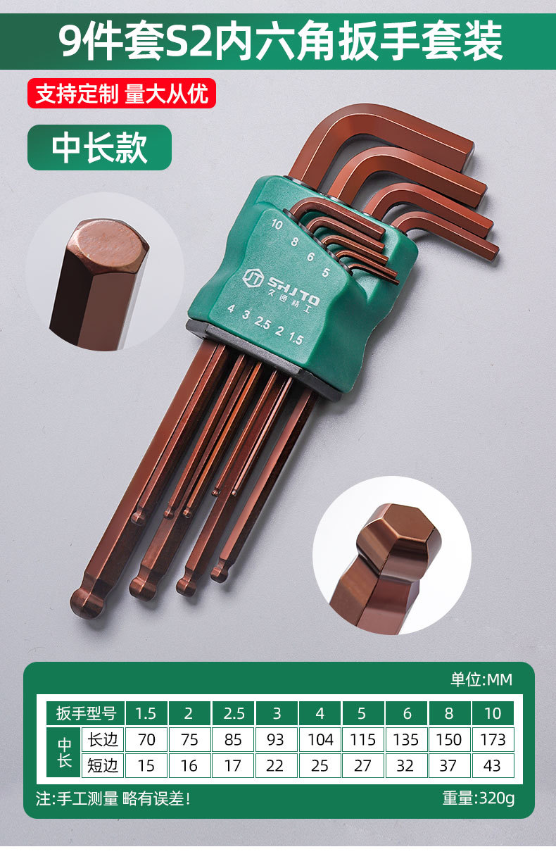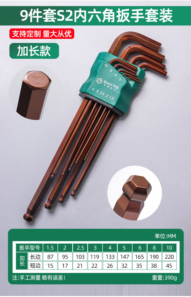 | Modelo | 372, S2 media y larga cabeza de bola hexagonal 9 piezas, 0,32 kg, 373, S2 alargada cabeza de bola hexagonal 9 piezas, 0,39 kg |