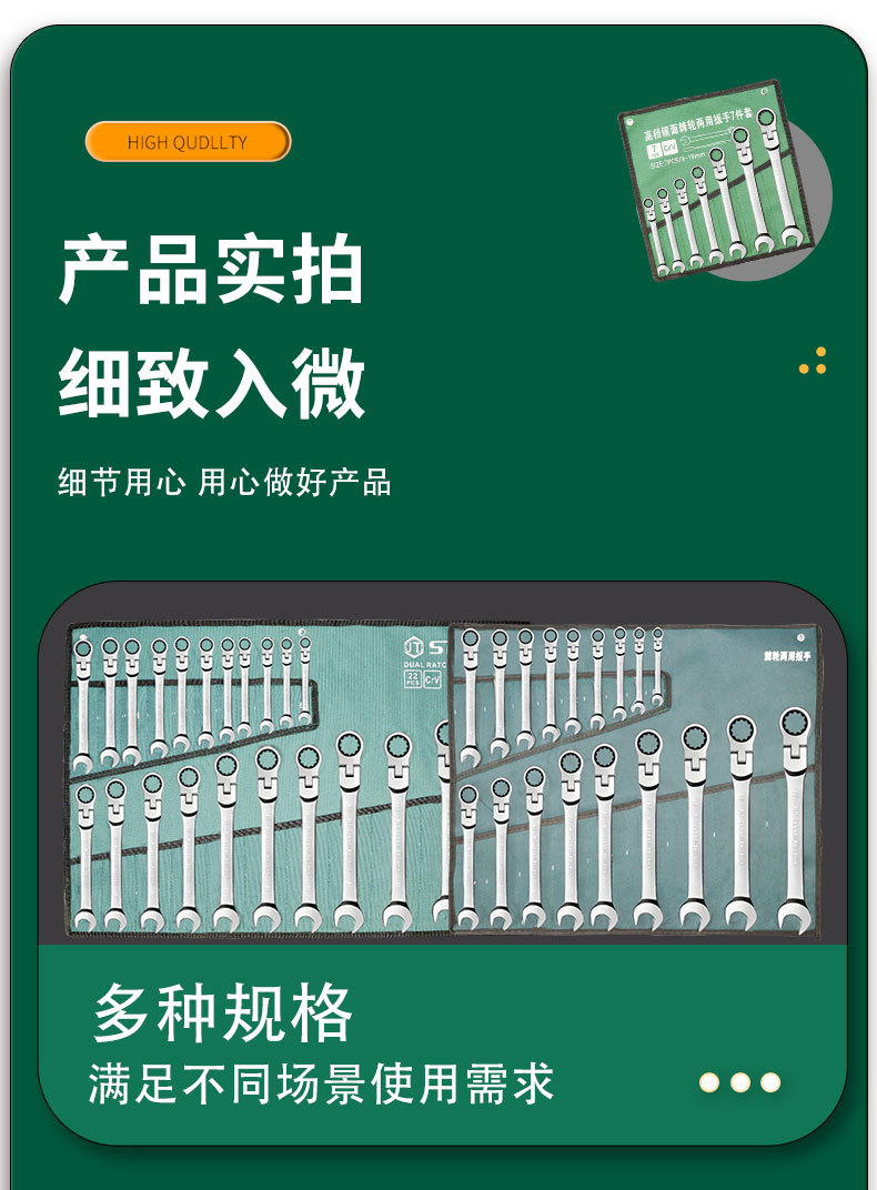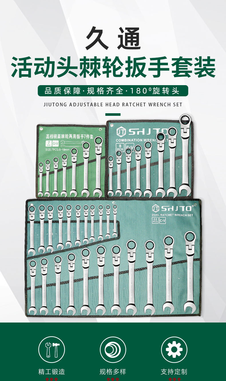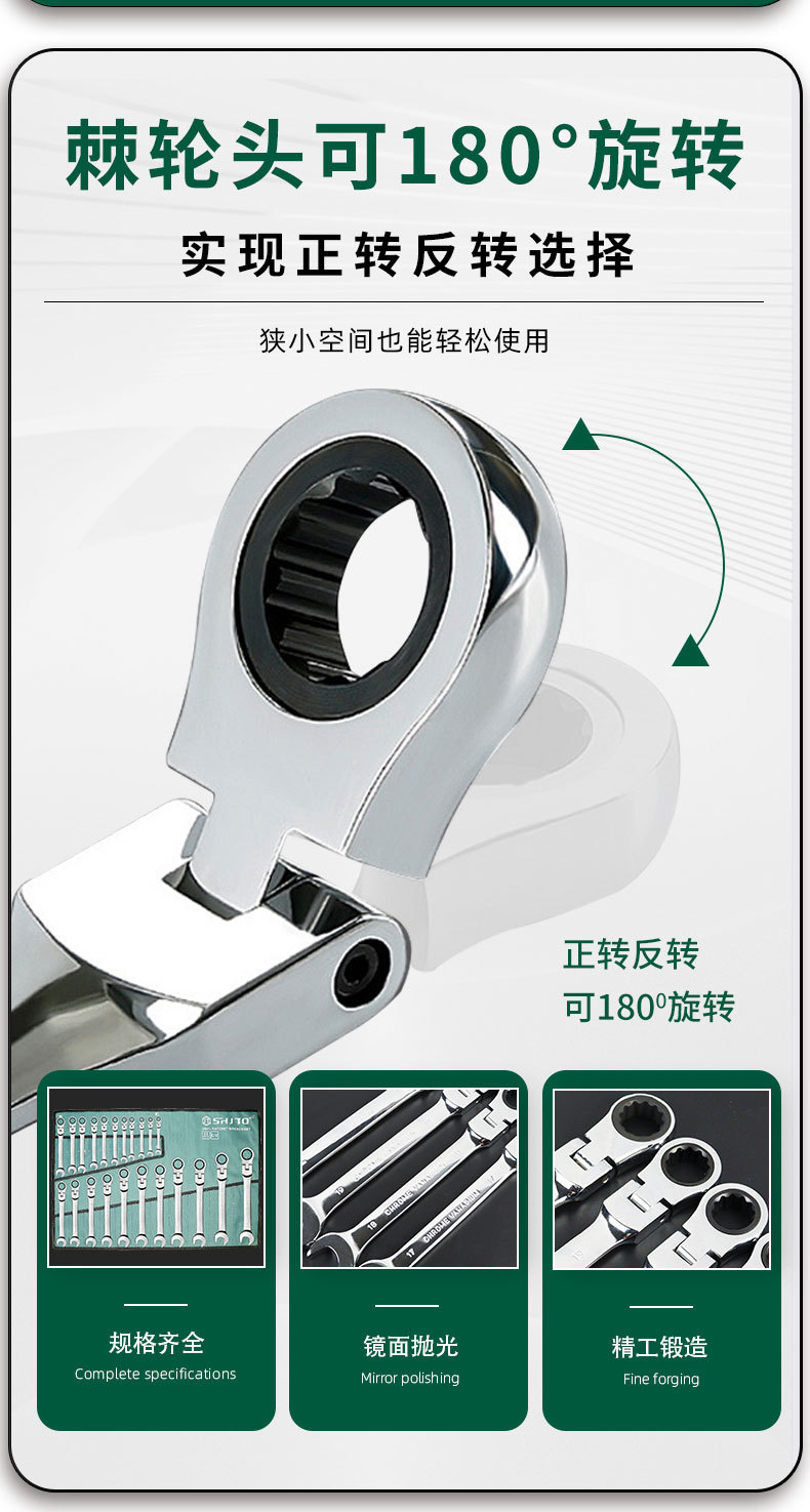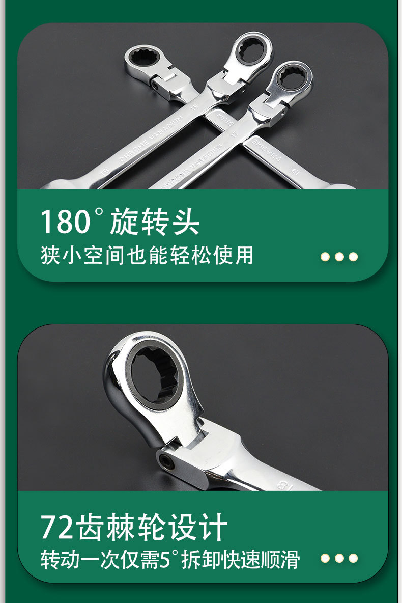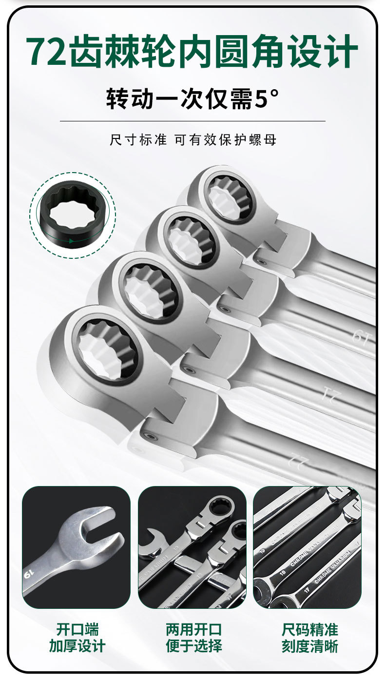 Llave de trinquete de dirección, llave de trinquete de cabeza móvil, espejo de abertura cromada, conjunto completo de trinquete rápido de flores de ciruela