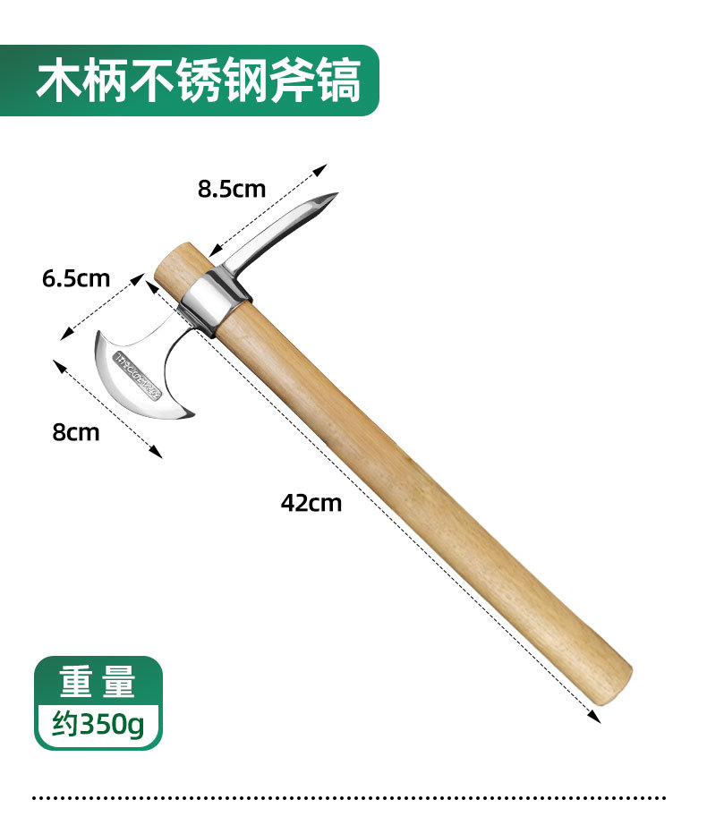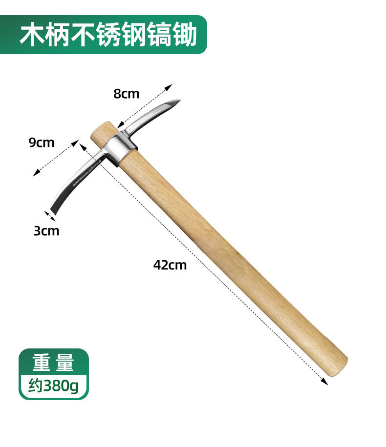 | Modelo | 300, pico de mango de madera de acero inoxidable, 60 / pieza, 0,39 kg, 301, pico de mango de madera de acero inoxidable (punta), 100 / pieza, 0,35 kg, 302, pico de mango de madera de acero inoxidable (cabeza plana), 60 / pieza, 0,38 kg |