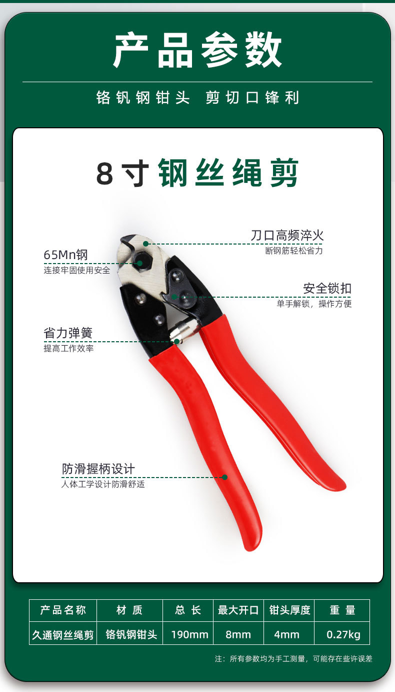 | Modelo | 265, tijeras de alambre de acero, 10 / caja / 60 piezas, 0.27kg |