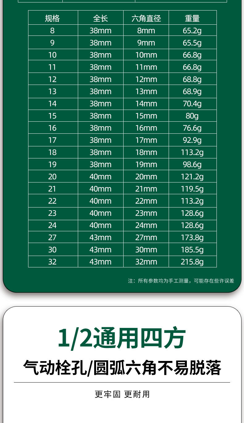 1 / 2 conjunto de manguito de cañón de aire pequeño engrosado llave eléctrica neumática hexagonal neumática manguito corto gran vuelo 8 - 36mm