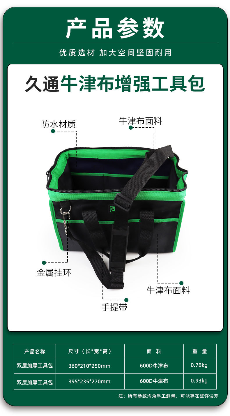 Fabricante al por mayor kit de herramientas de tela de oxford multifuncional mantenimiento eléctrico lienzo grande bolsa de herramientas de plástico grueso