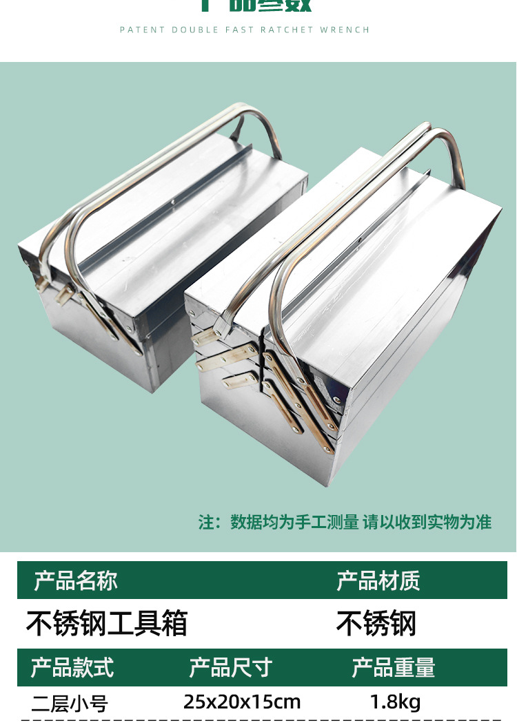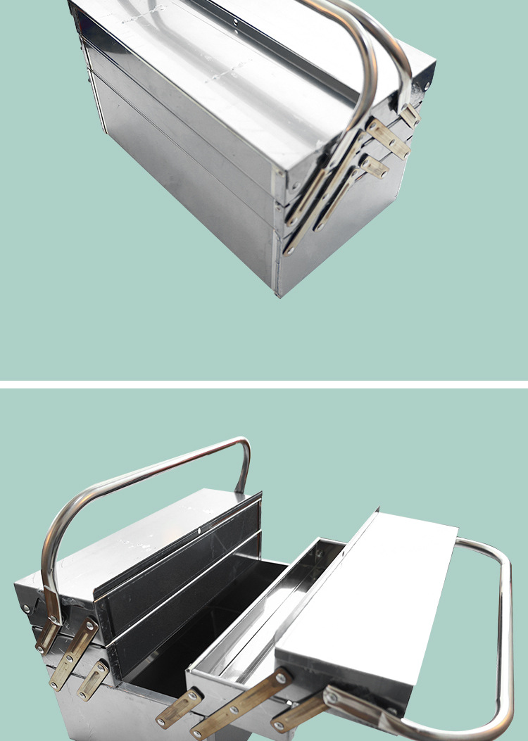 | Especificaciones y modelos | 467, caja de herramientas de doble capa de acero inoxidable 350, 35 * 20.5 * 17cm, 468, caja de herramientas de doble capa de acero inoxidable 425, 42.5 * 20.5 * 17cm, 469, caja de herramientas de doble capa de acero inoxidable 465, 46.5 * 20.5 * 17cm, 470, caja de herramientas de triple capa de acero inoxidable 355, 35.5 * 20.5 * 17cm, 471, caja de herramientas de triple capa de acero inoxidable 425, 42.5 * 20.5 * 21cm, 472, Caja de herramientas de acero inoxidable 465, 46.5 * 20.5 * 21cm |