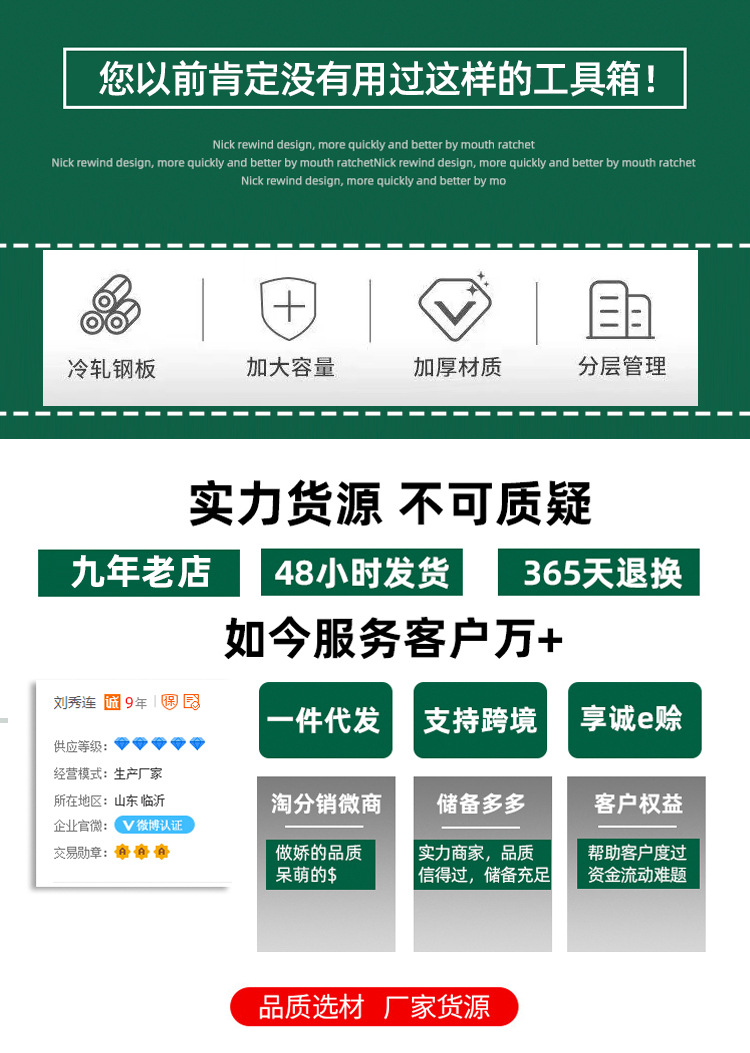 | Uso principal | Caja de herramientas, caja de herramientas montada en el vehículo, caja de almacenamiento de herramientas, caja de herramientas de mantenimiento |