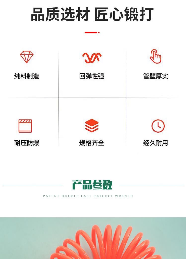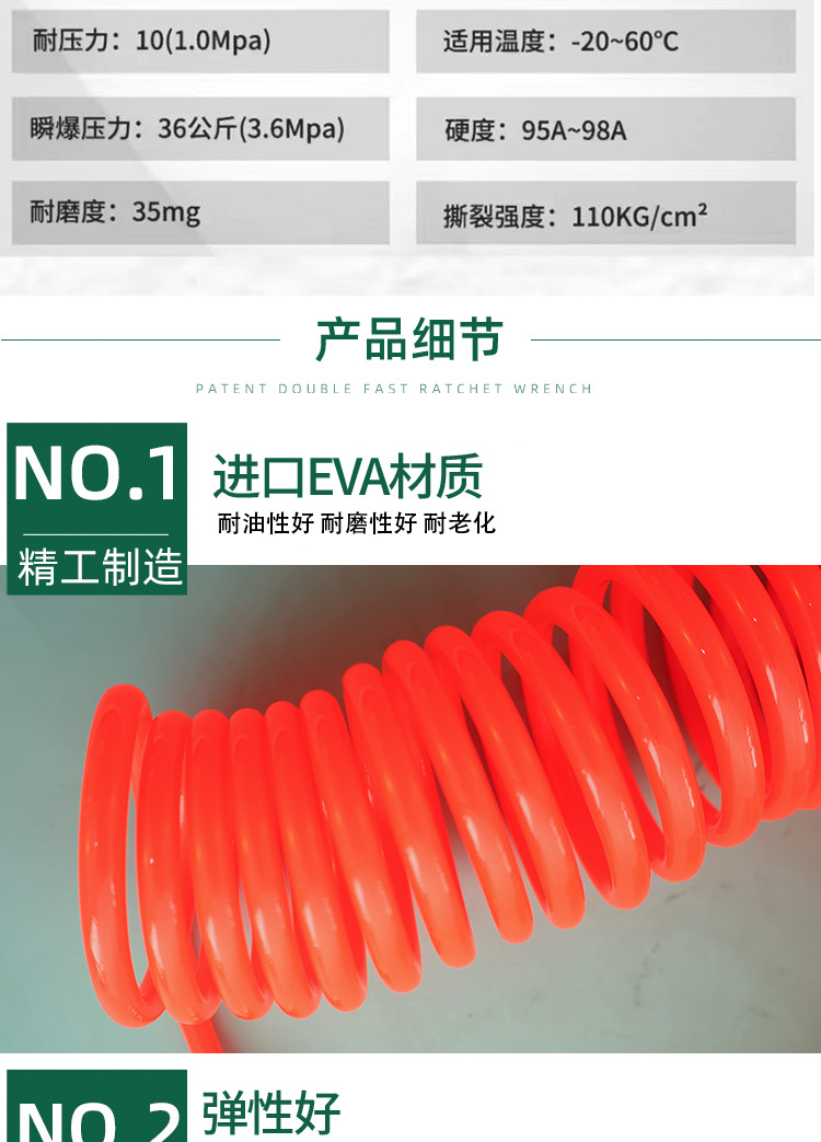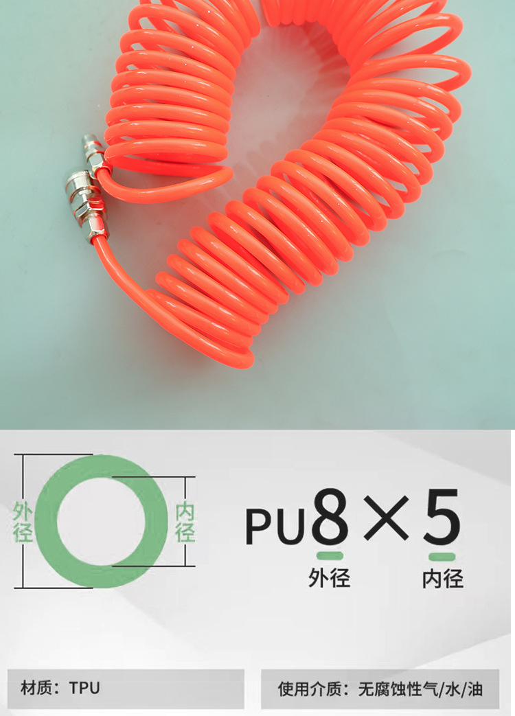 Fabricante ventas de resorte PU tubo de aire compresor de aire tubo de resorte tubo telescópico manguera de tubo de aire espiral con conector