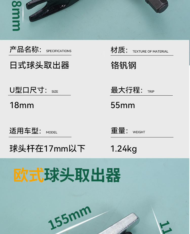 Especificaciones967, extractor de cabeza de bola europeo, 1,3 kg, 970, extractor de cabeza de bola japonés