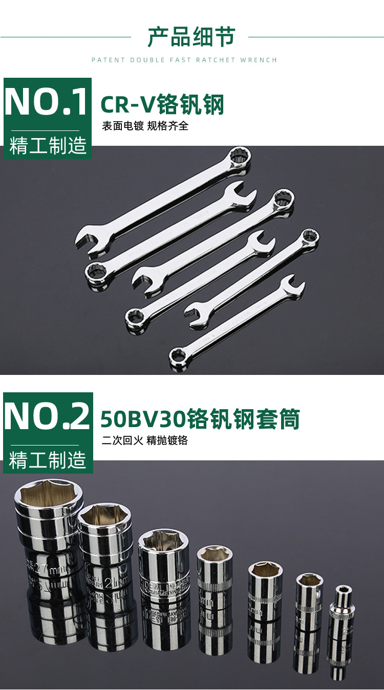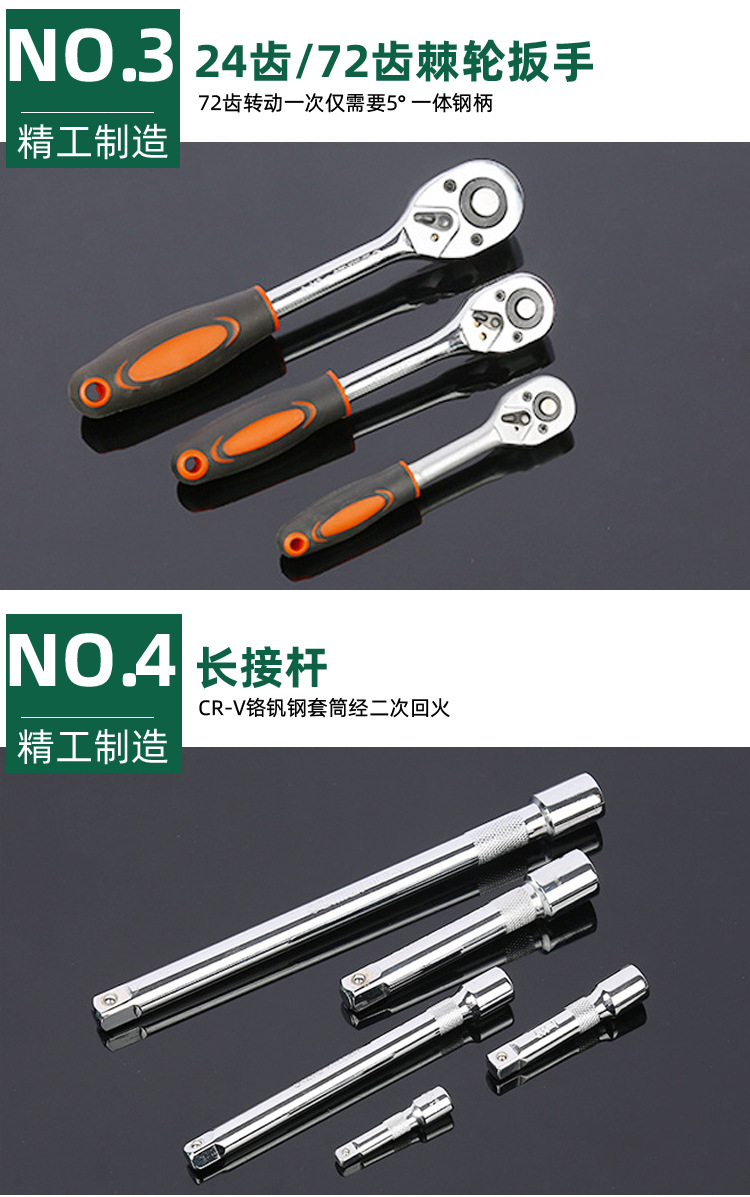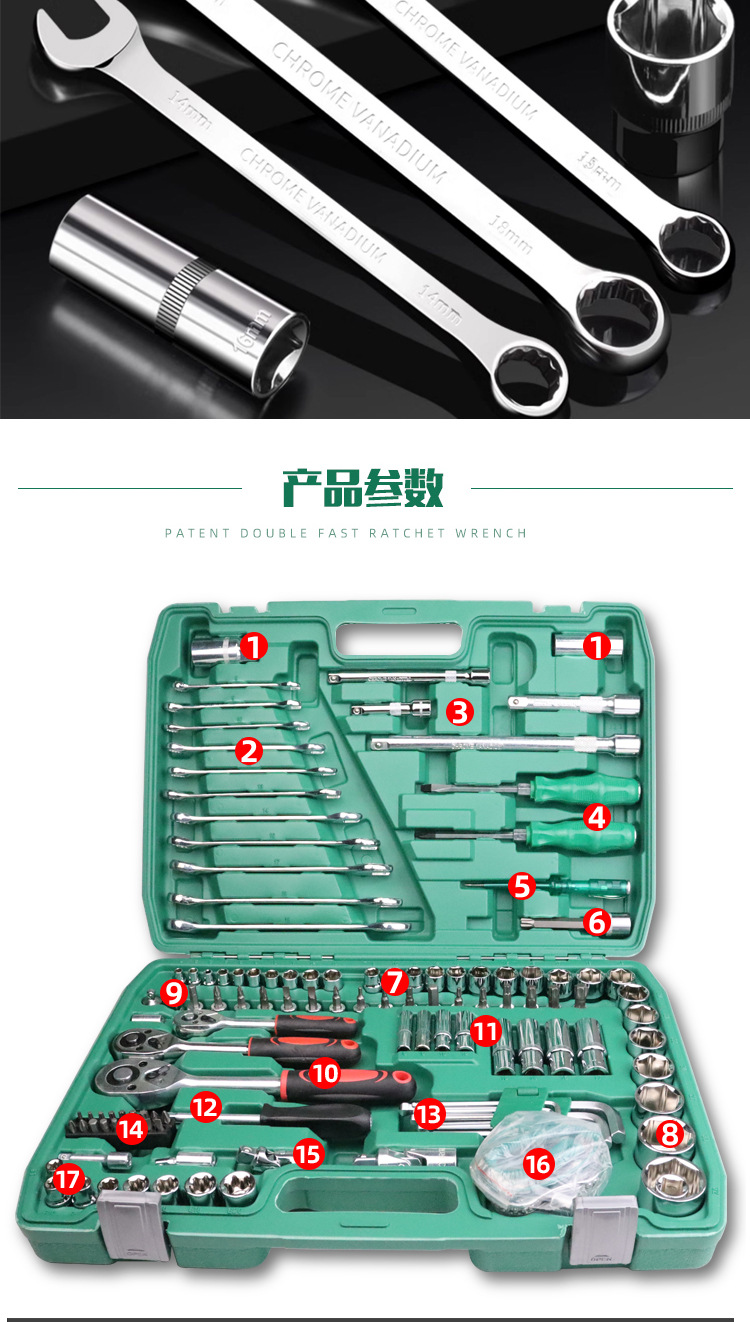 121-pieza de reparación de automóviles grandes, medianos y pequeños volando rápido Llave de trinquete llave de doble propósito biela manga herramienta traje