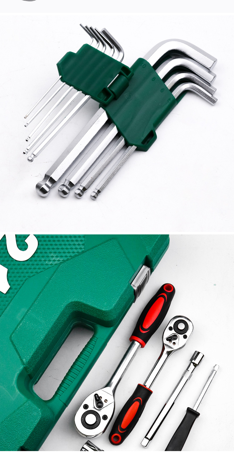 741, juego de herramientas de reparación de automóviles de 121 piezas con 24 dientes (caja verde), 3/pieza