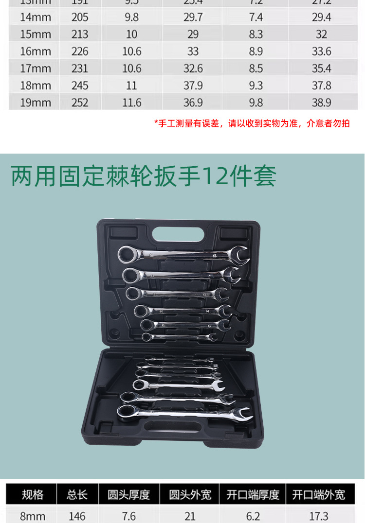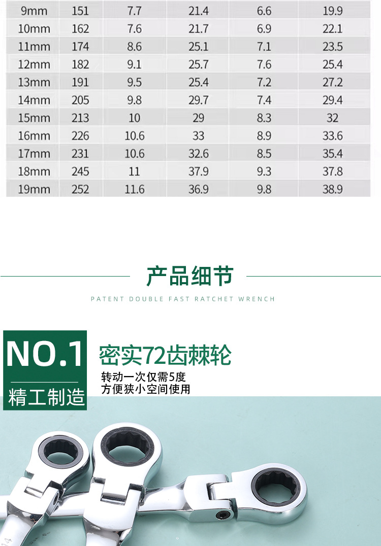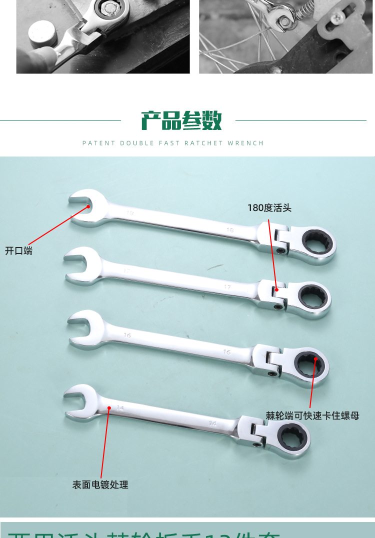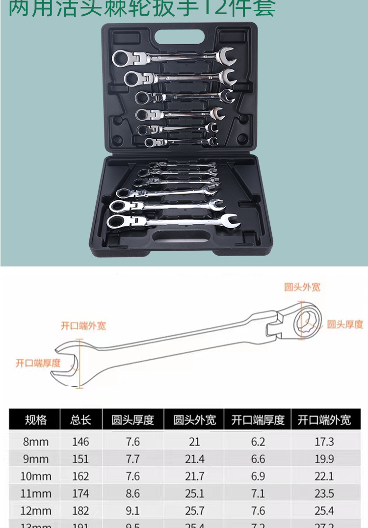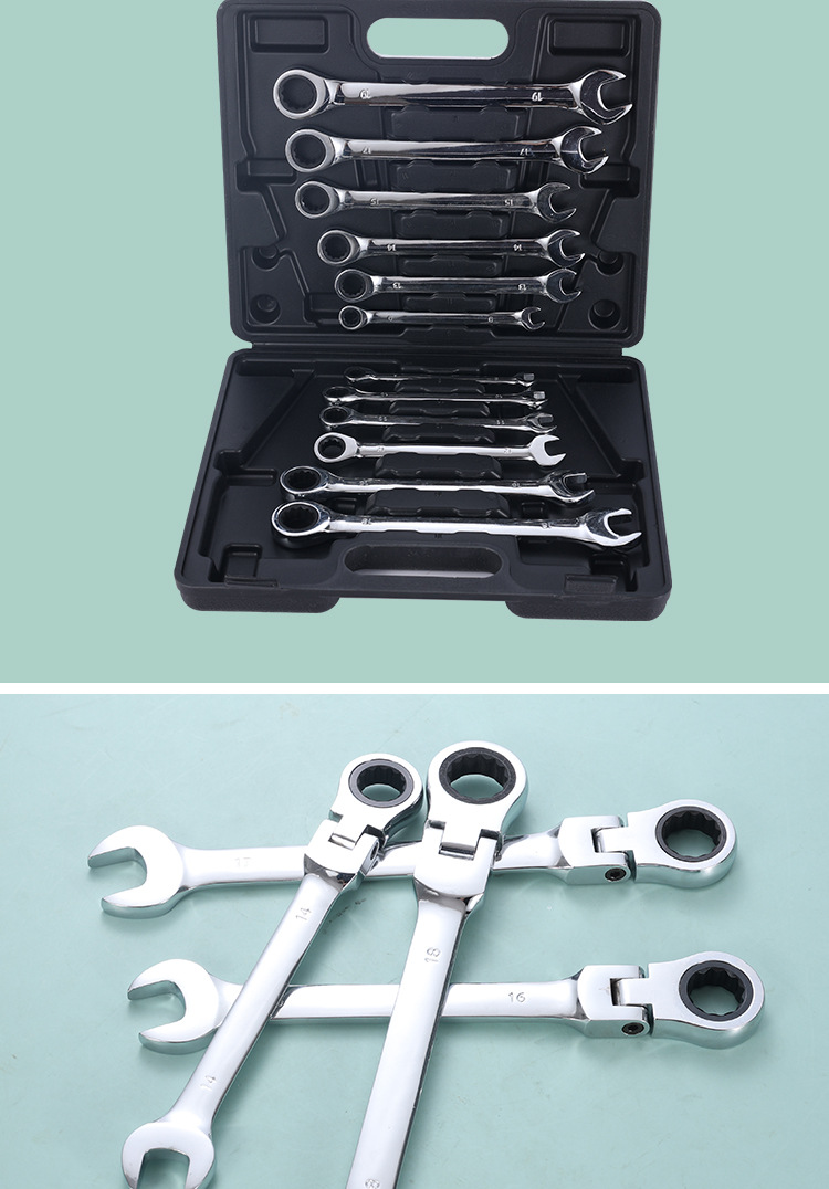 12pc llave de trinquete de doble propósito herramienta de reparación de automóviles de cabeza fija móvil 72 dientes juego de llave de trinquete de 12 piezas