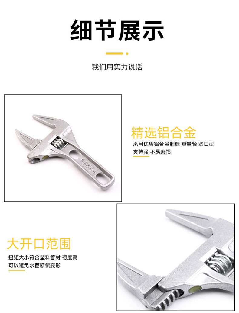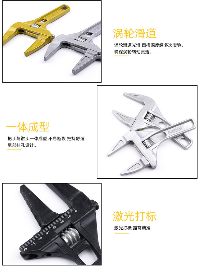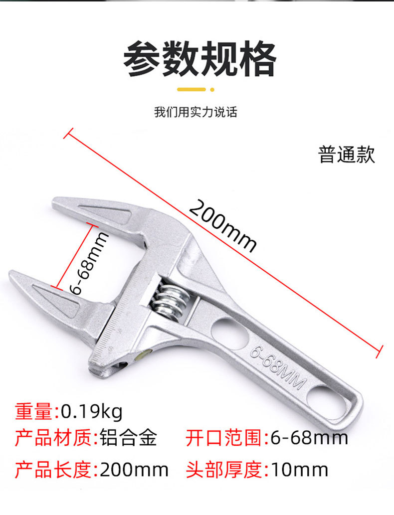 Fuente de la fábrica al por mayor grande de aleación de aluminio abierta mango corto llave de plomería móvil llave de baño de reparación de tuberías