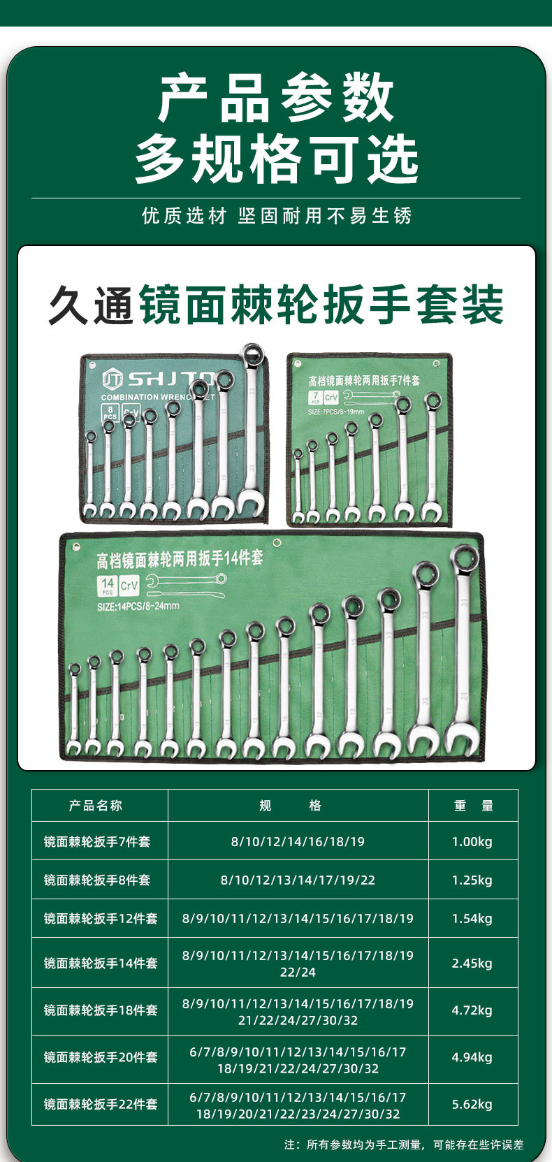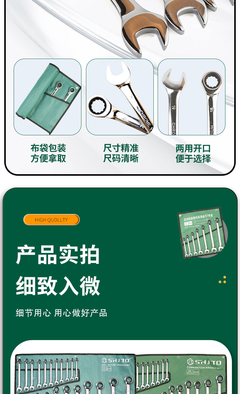 Jiutong 6-24 ciruela de doble uso de 10 piezas de trinquete de 14 piezas de ciruela abierta espejo de llave de 20 piezas Juego de llaves