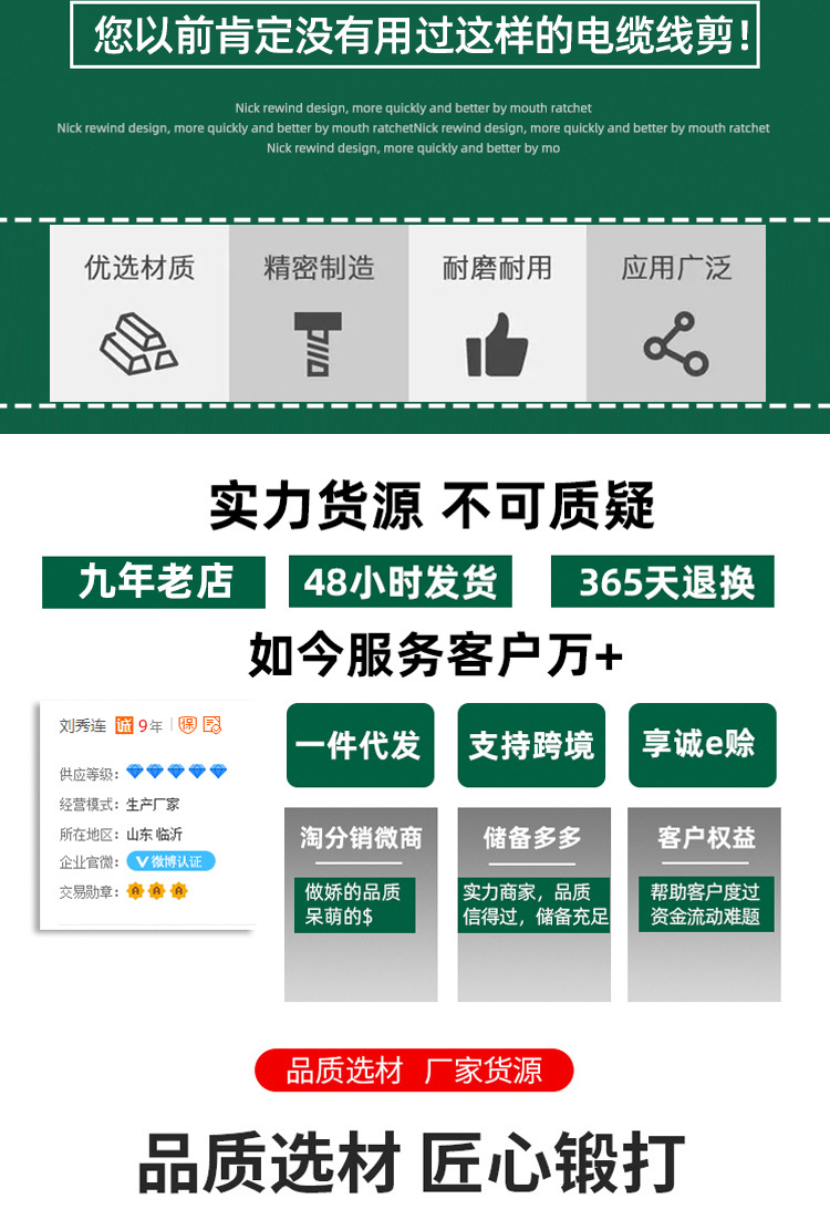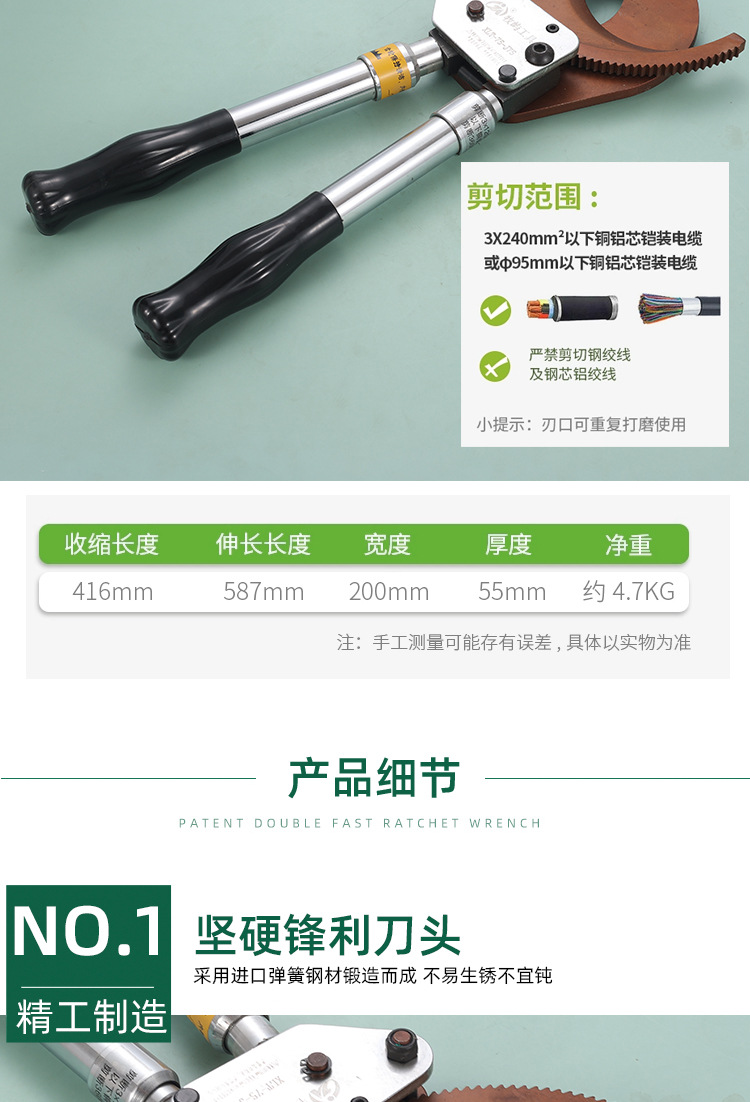 Tijeras de cable de trinquete cortador de alambre profesional al por mayor cortador de alambre multi-especificación cortador de cable manual de cobre y aluminio