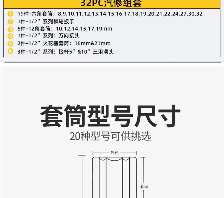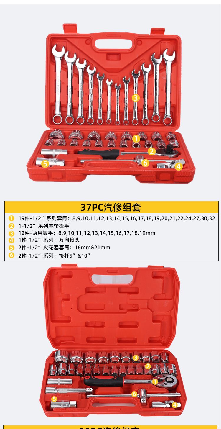 Fabricante 3 juego de manga de 2 piezas llave de enchufe bujía herramienta combinación traje conjunto de 37 piezas