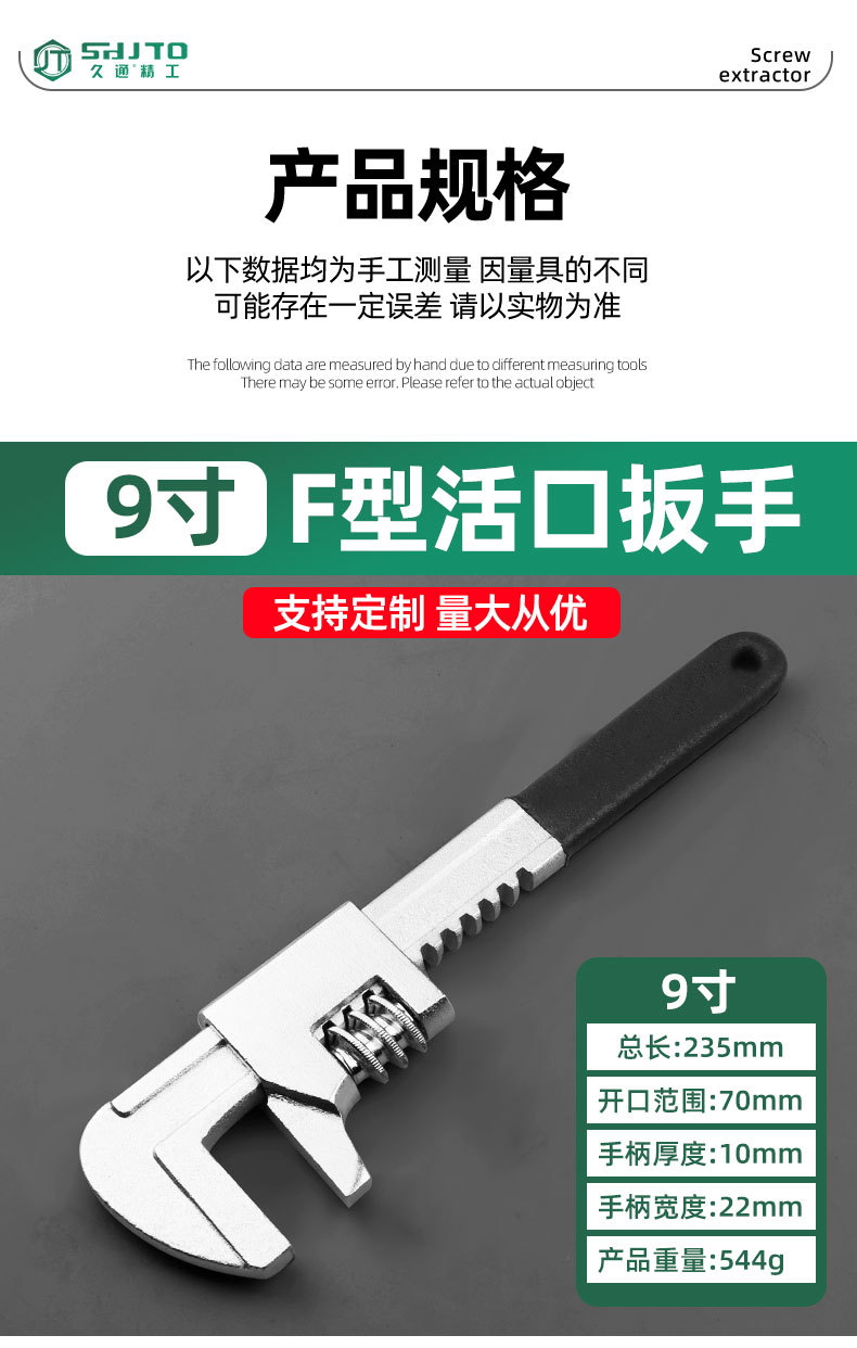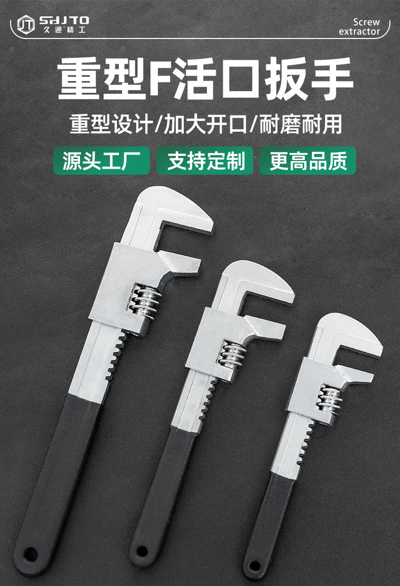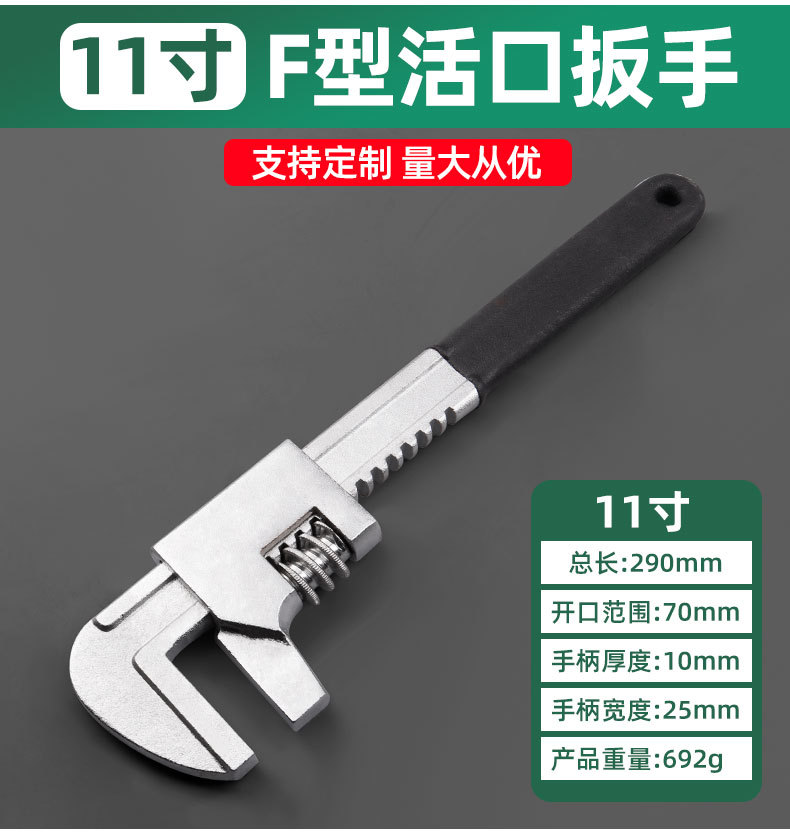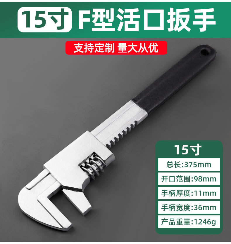 Fábrica al por mayor llave ajustable llave tipo F Águila boca grande abierta llave de tubo de agua de ángulo recto herramienta de paso largo