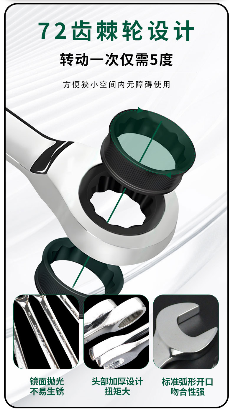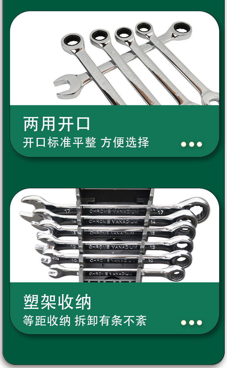Venta al por mayor de fábrica de doble cabeza de doble propósito trinquete Plum Blossom llave abierta herramienta de reparación de automóviles Llave de trinquete rápida traje