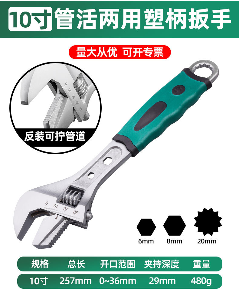 Ventas de la fábrica Jiutong multi-función de tubo activo de doble propósito llave grande llave ajustable abierta llave ajustable