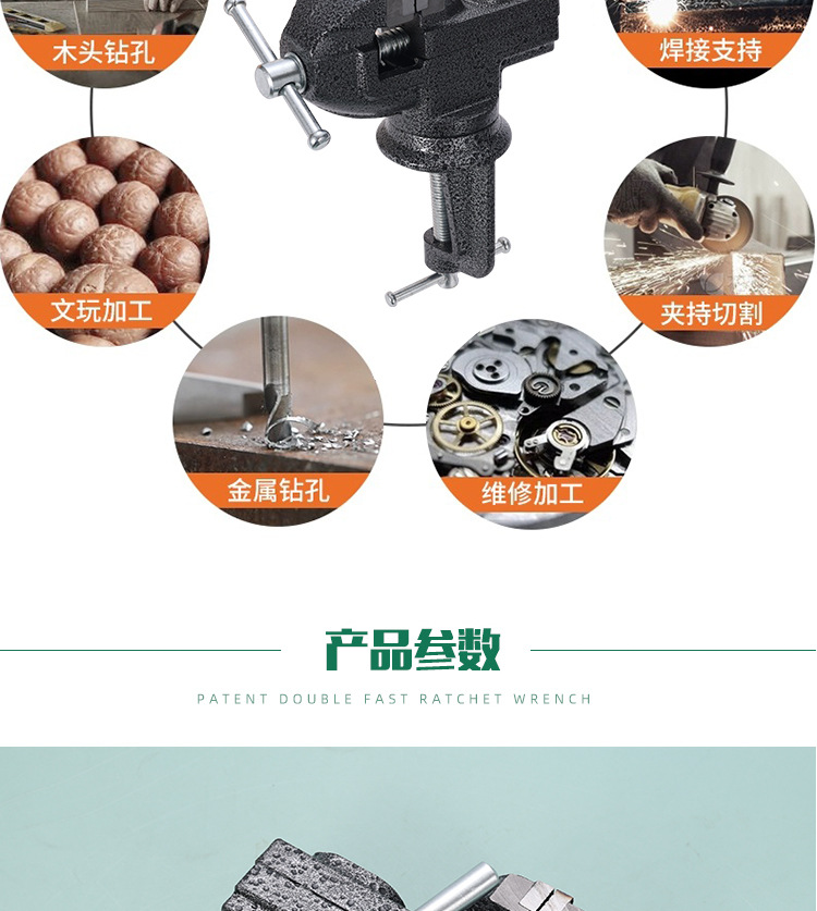 Herramientas de hardware de 360 grados giratorio mini vise tabla vise pequeño vise tabla vise plana (luz)