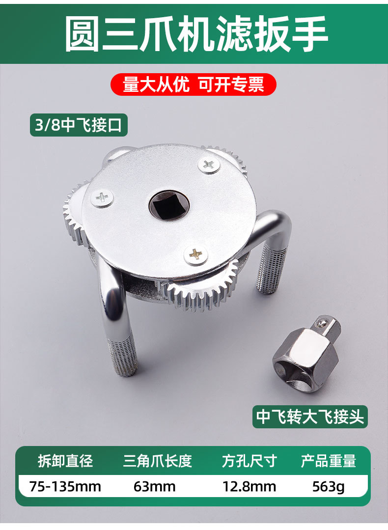 Herramienta de llave de filtro de aceite del coche Herramienta de desmontaje de rejilla de aceite de filtro de llave de máquina de tres garras redonda plana de tres garras
