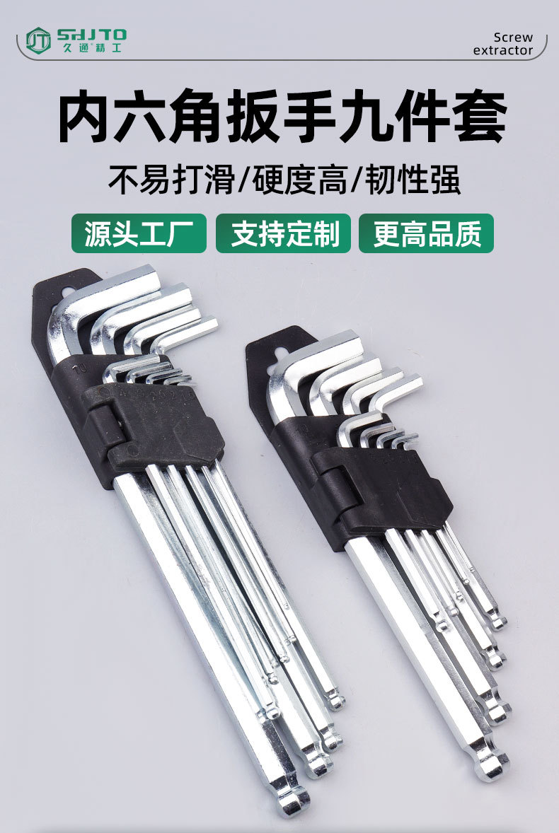 Venta al por mayor de fábrica de 9 piezas de cabeza de bola tarjeta llave hexagonal en forma de L placa combinación de mano traje herramientas de hardware