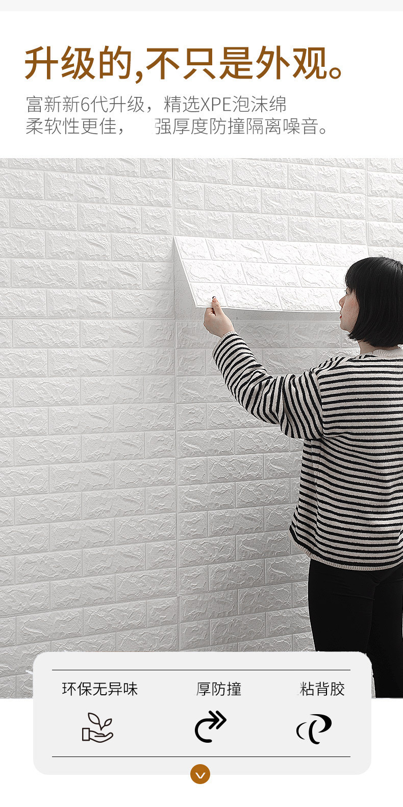 Etiquetado y envío transfronterizo de papel tapiz imitación ladrillo, pegatinas de pared 3D autoadhesivas, papel tapiz para decoración de dormitorios, fácil de instalar.