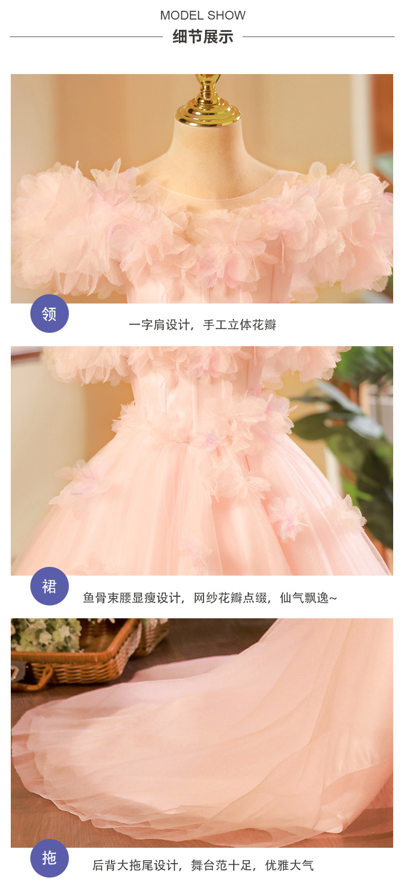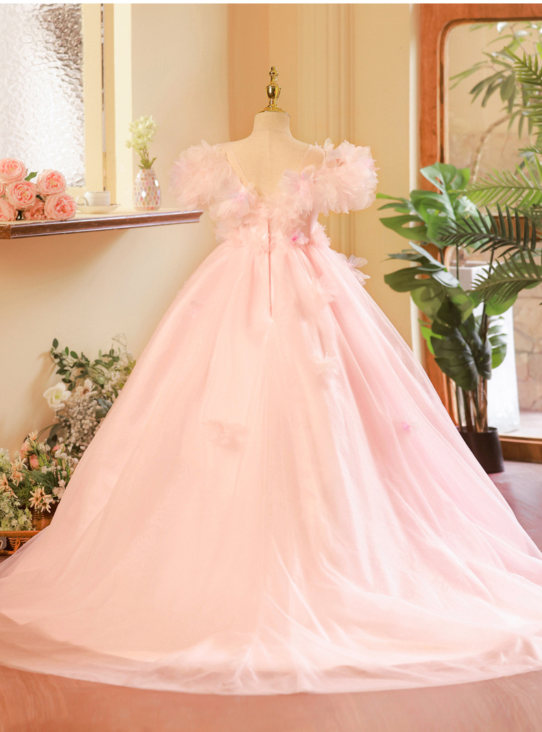 vestido de niña rosa desfile vestido de princesa de invierno vestido de piano anfitrión vestido de lujo ligero de alta gama vestido infantil