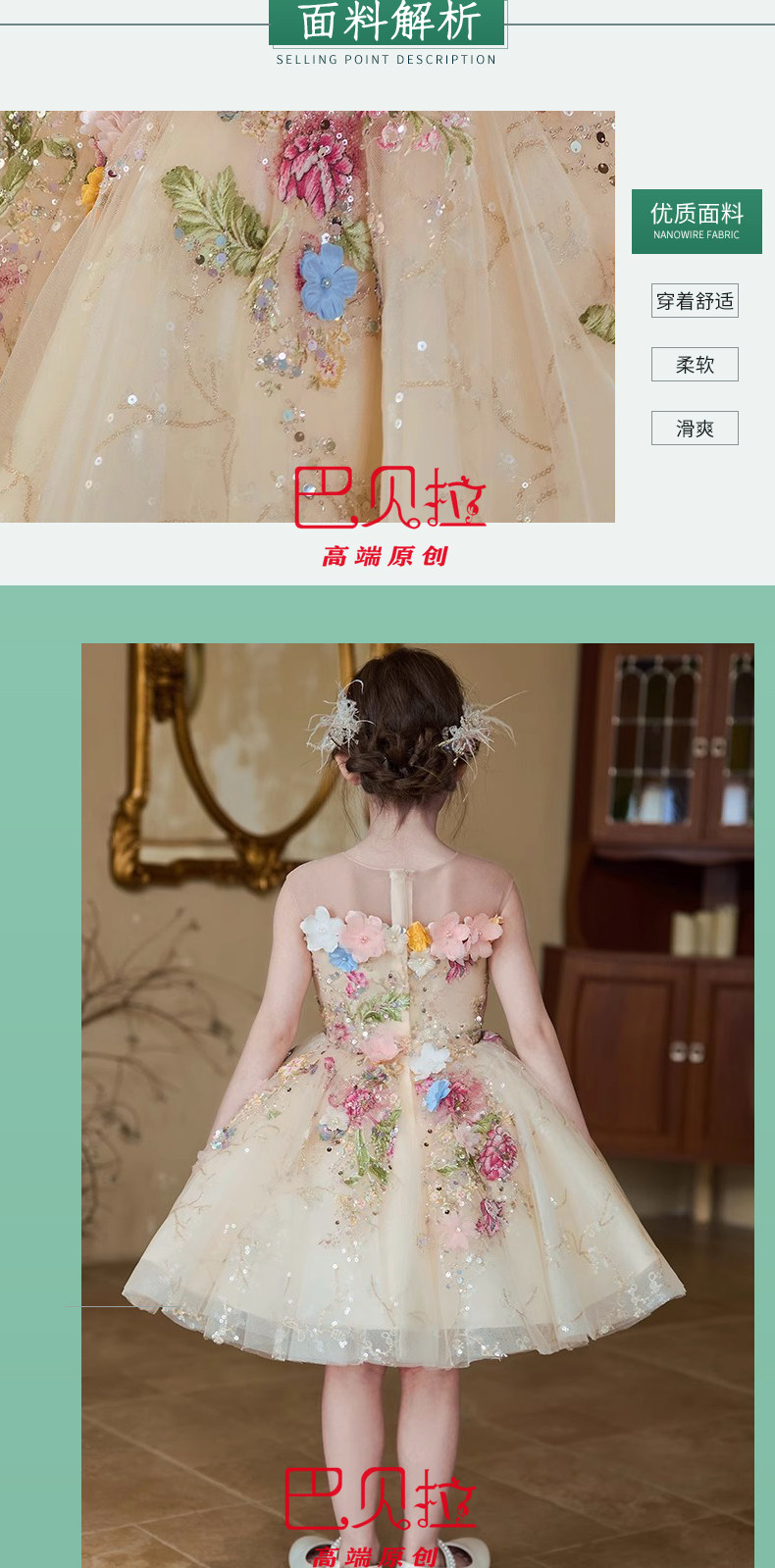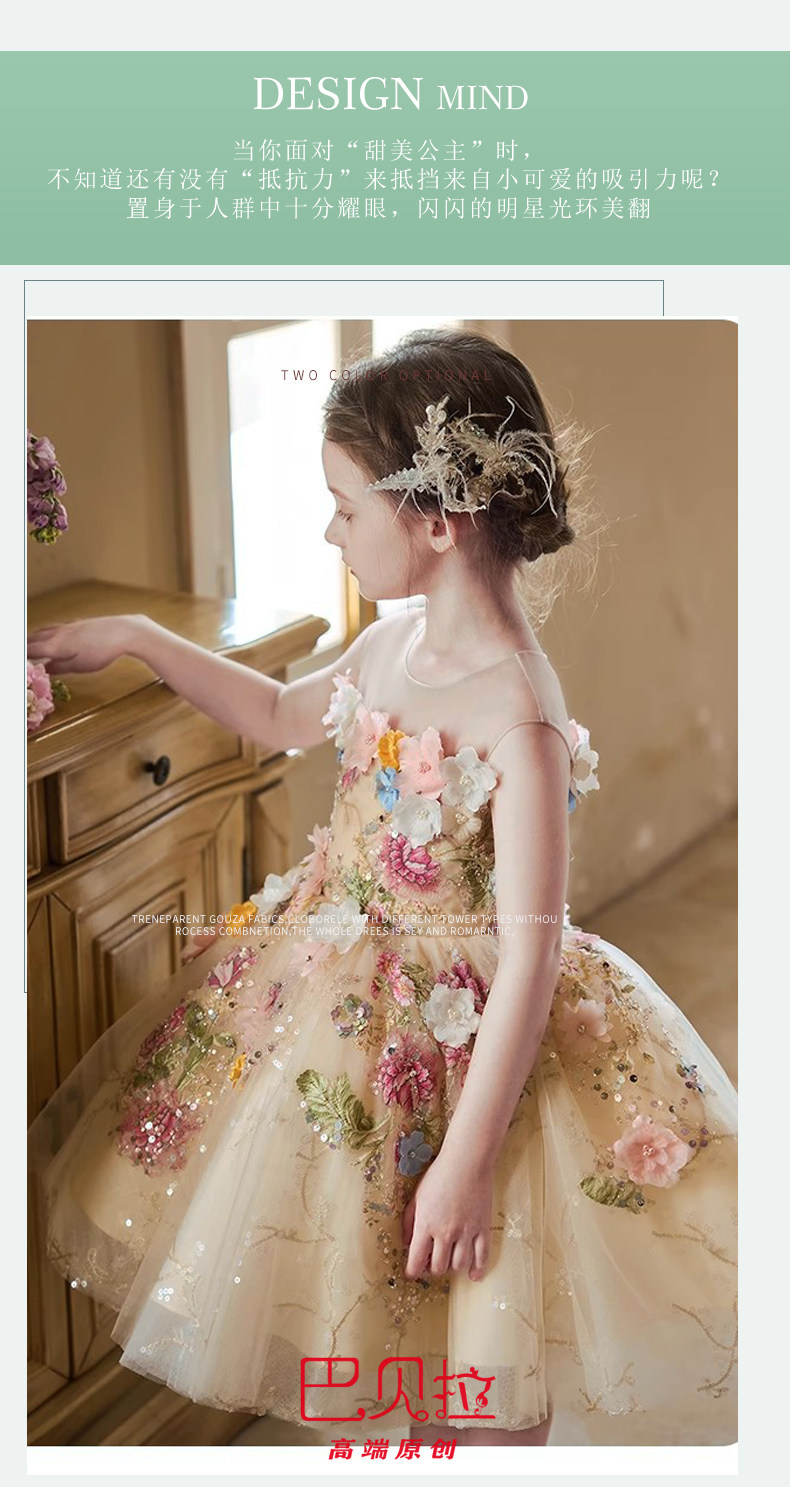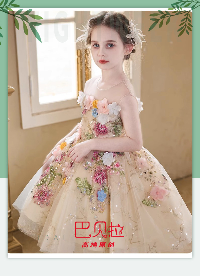 Vestido de niña lujoso nicho floral vestido de boda niña princesa vestido de cumpleaños vestido de anfitrión infantil