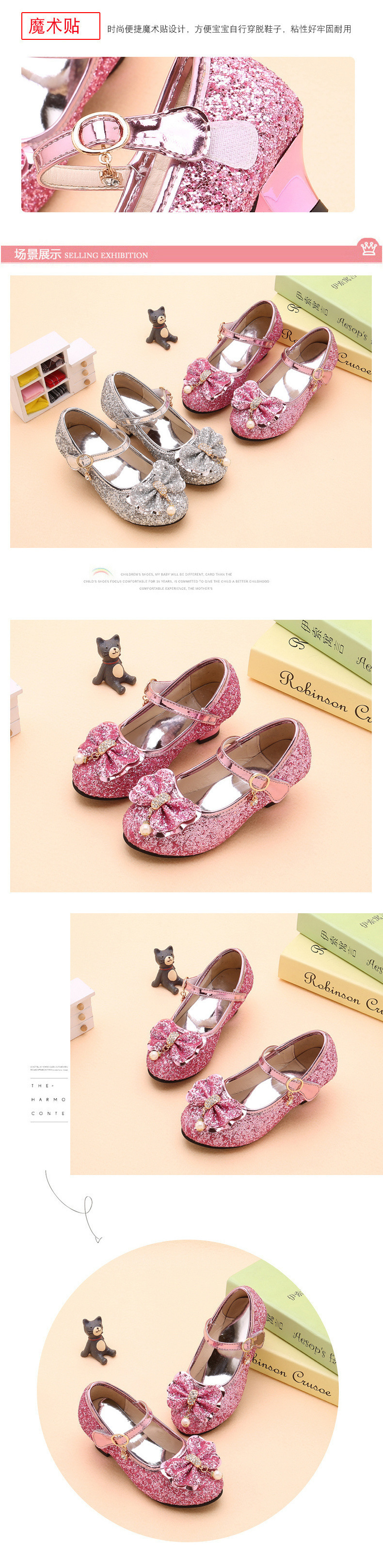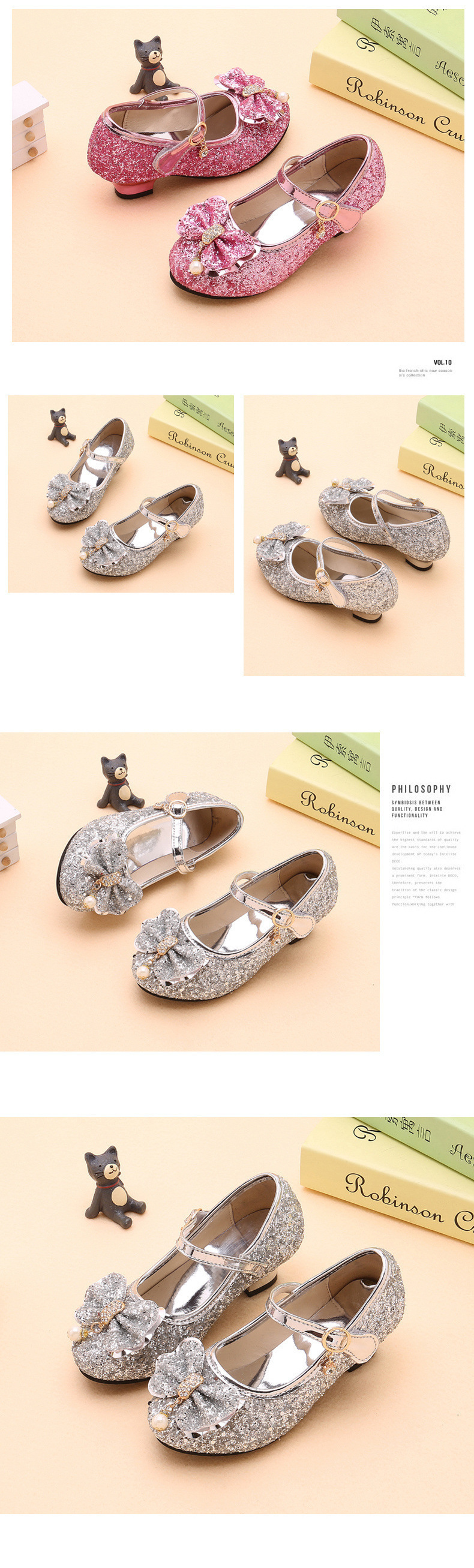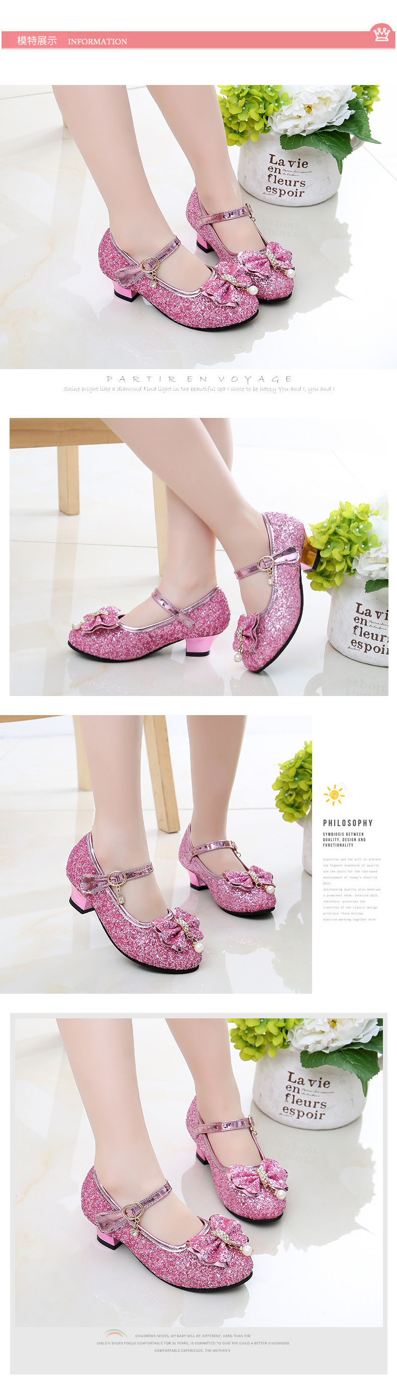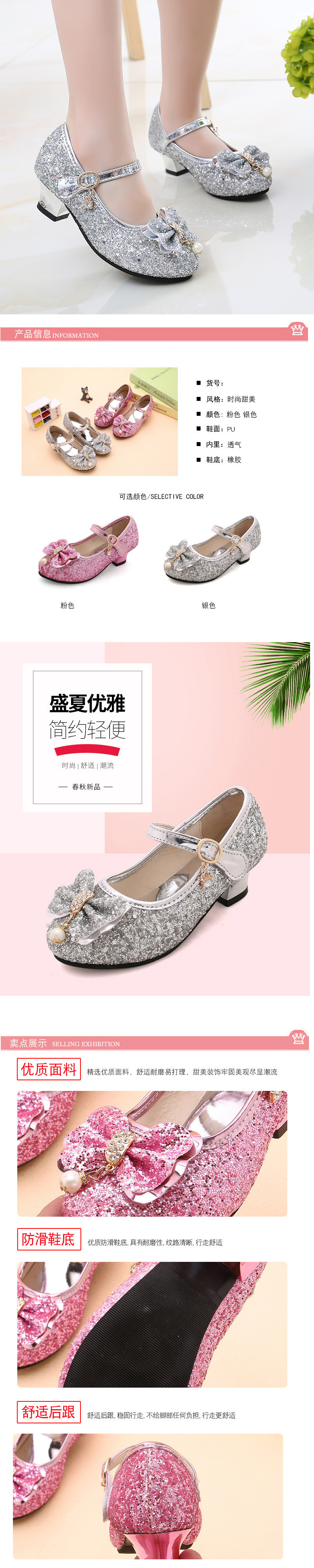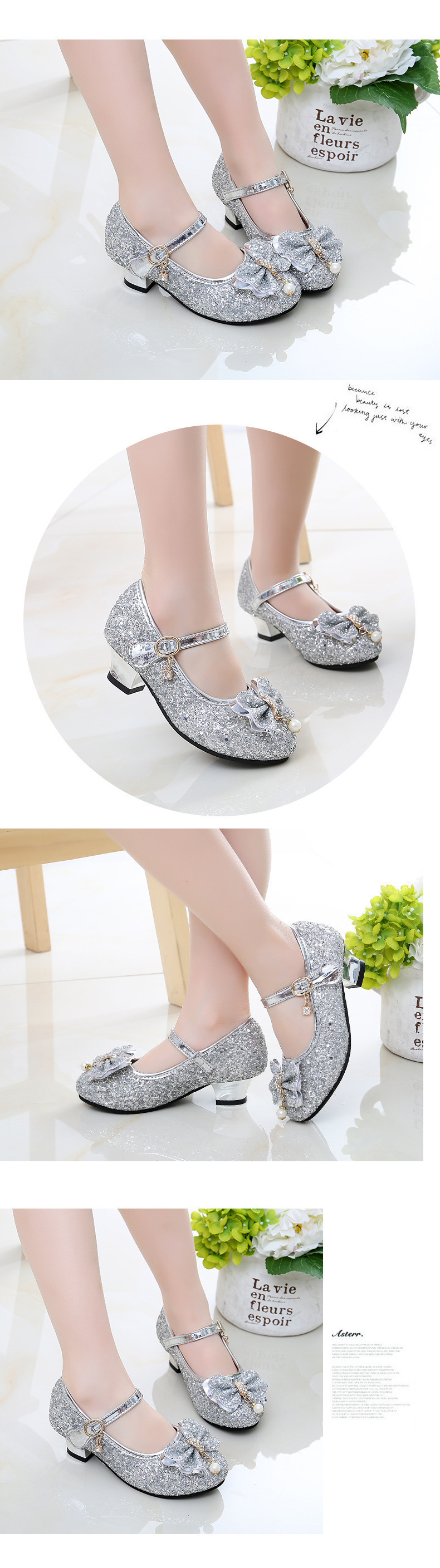 Nuevos zapatos de tacones altos para niñas zapatos de princesa zapatos de cuero para niños estudiantes de rendimiento de zapatos de baile plateados zapatos de primavera y otoño para niñas