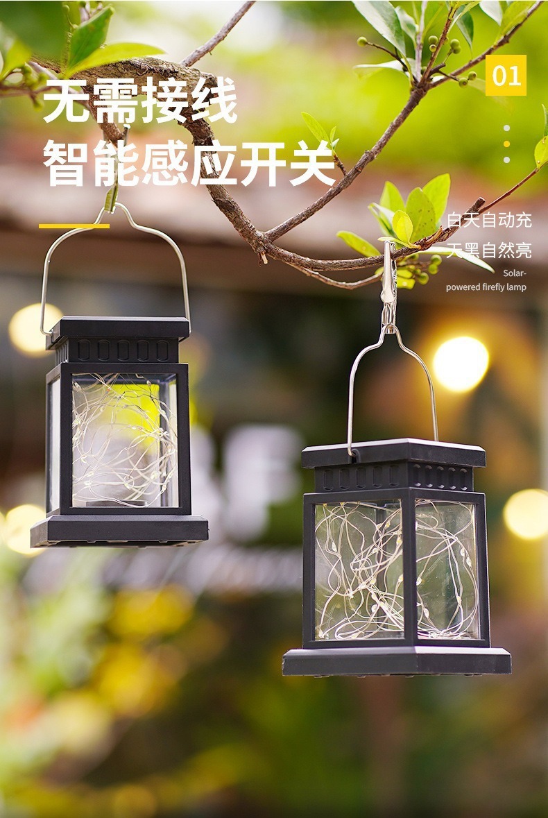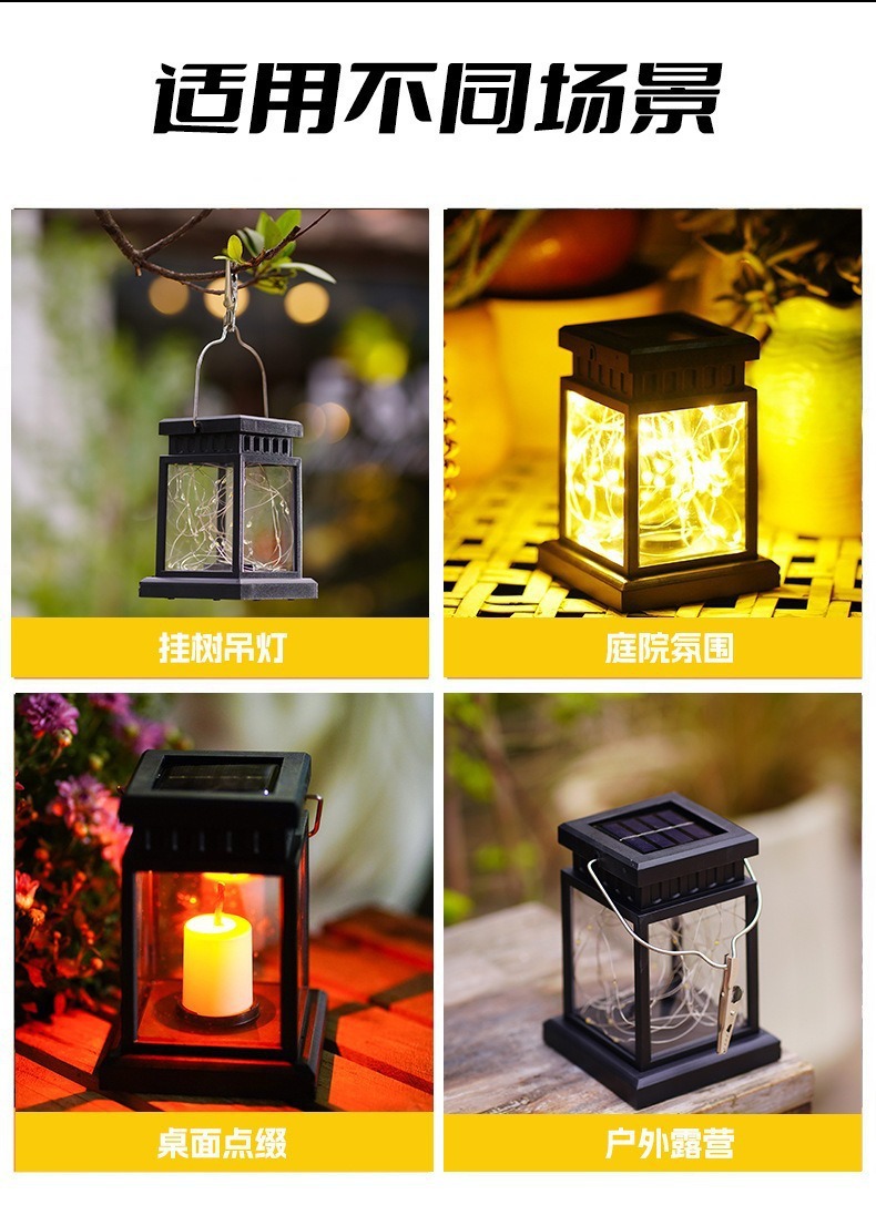 Solar patio pequeño palacio lámpara de atmósfera portátil jardín al aire libre paisaje decoración led lámpara pequeña lámpara colgante vela