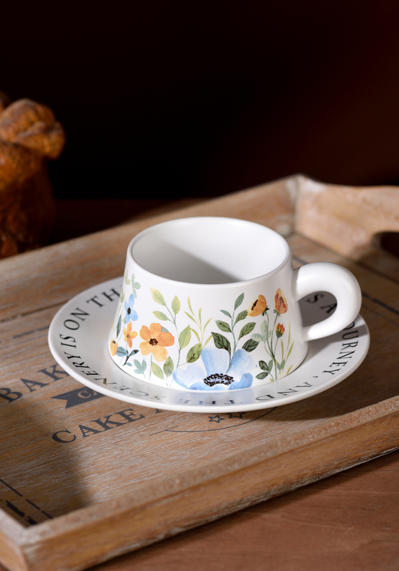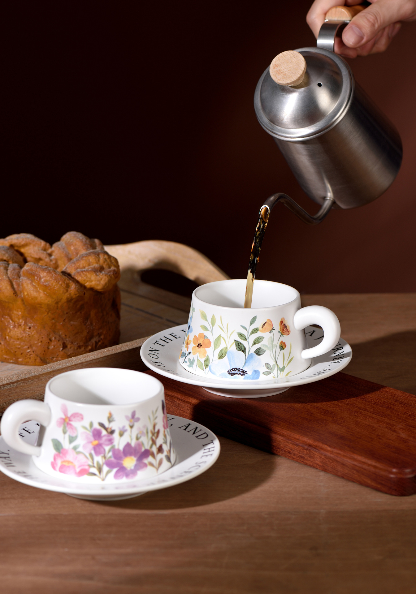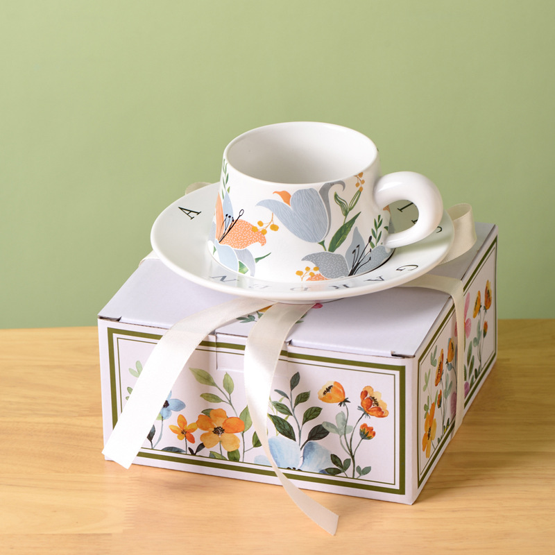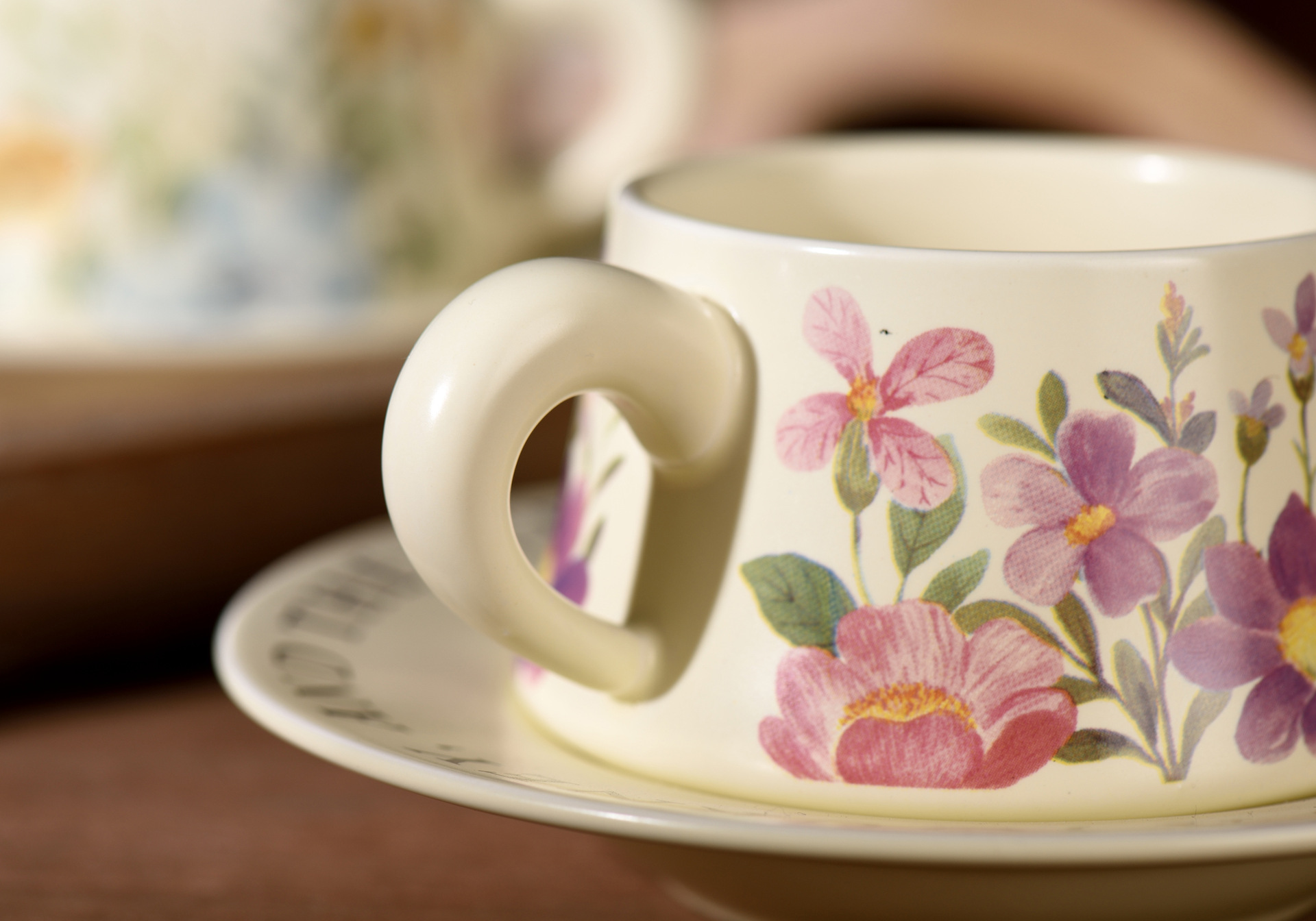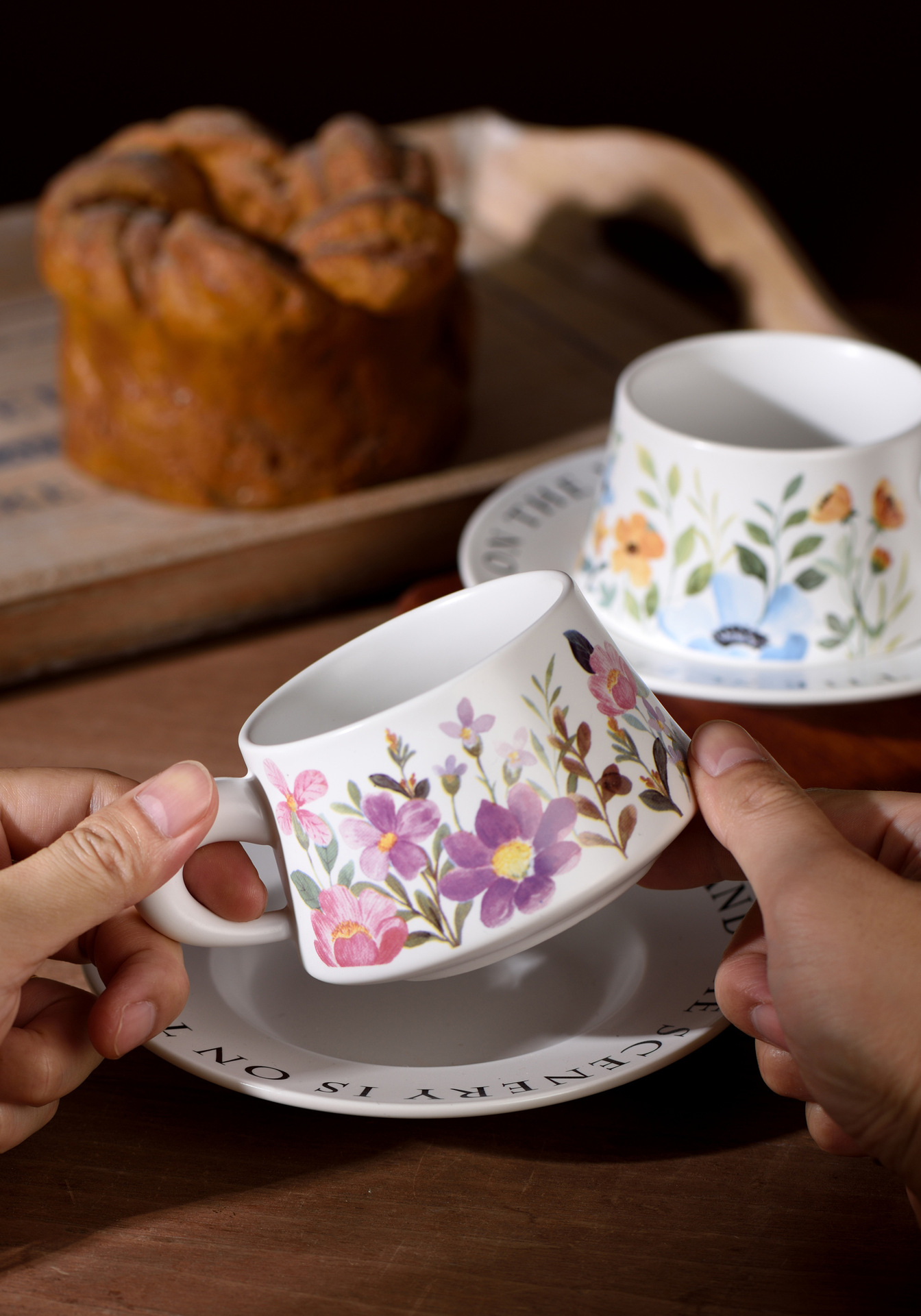 Luz lujosa francesa romántica pequeña flor de cerámica taza de café plato casual té de la tarde café nuevo conjunto de tazas de agua de porcelana hueso