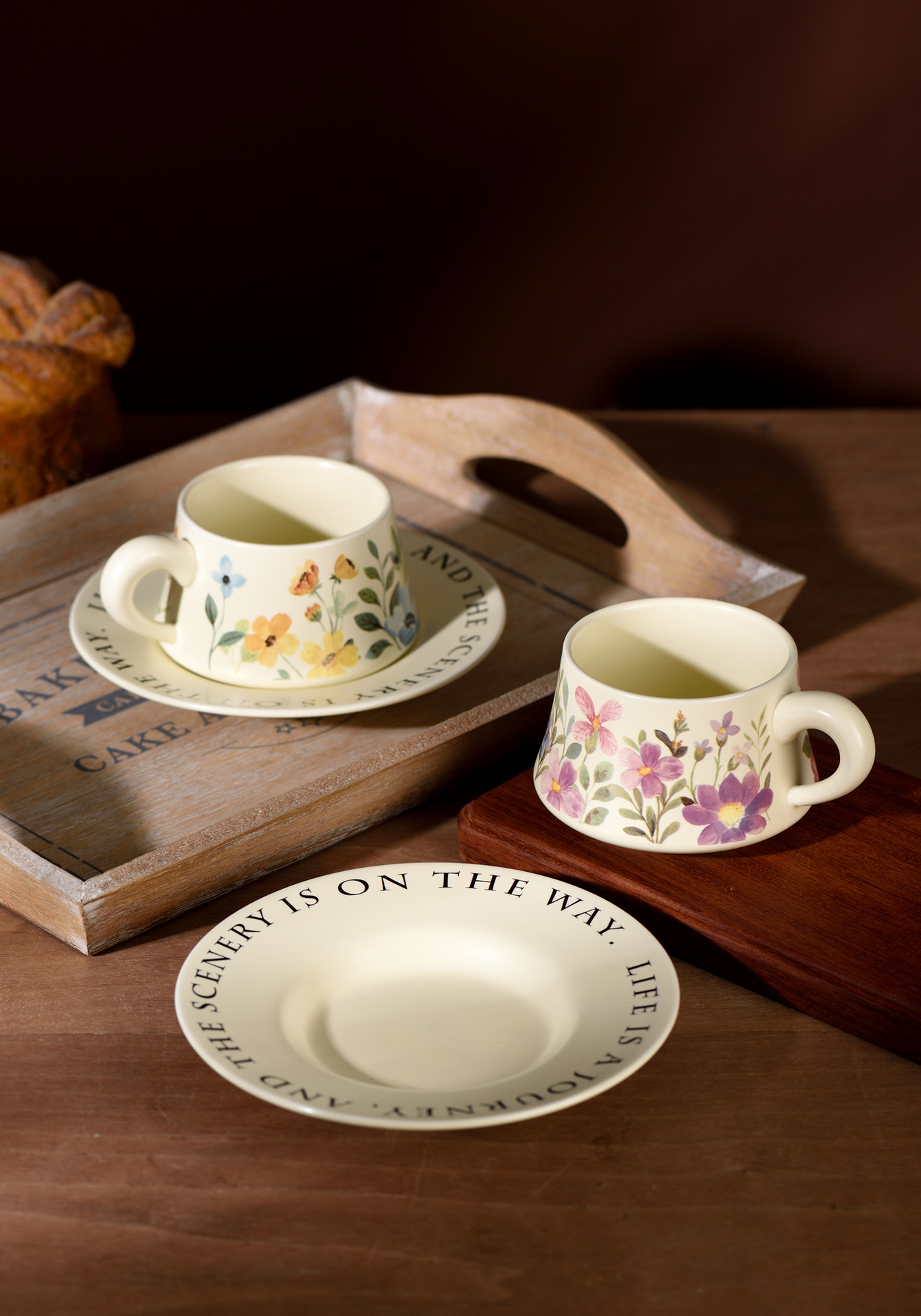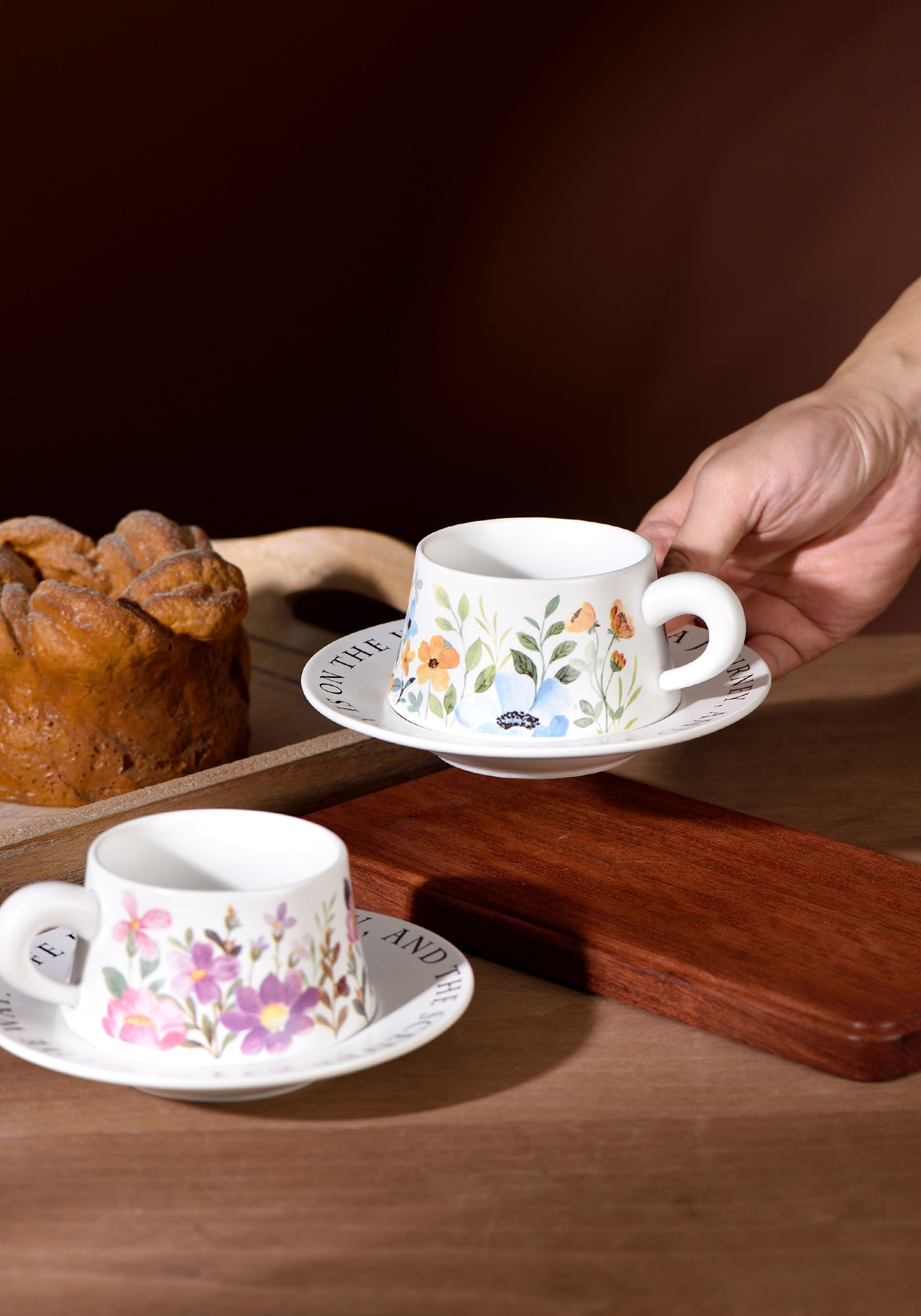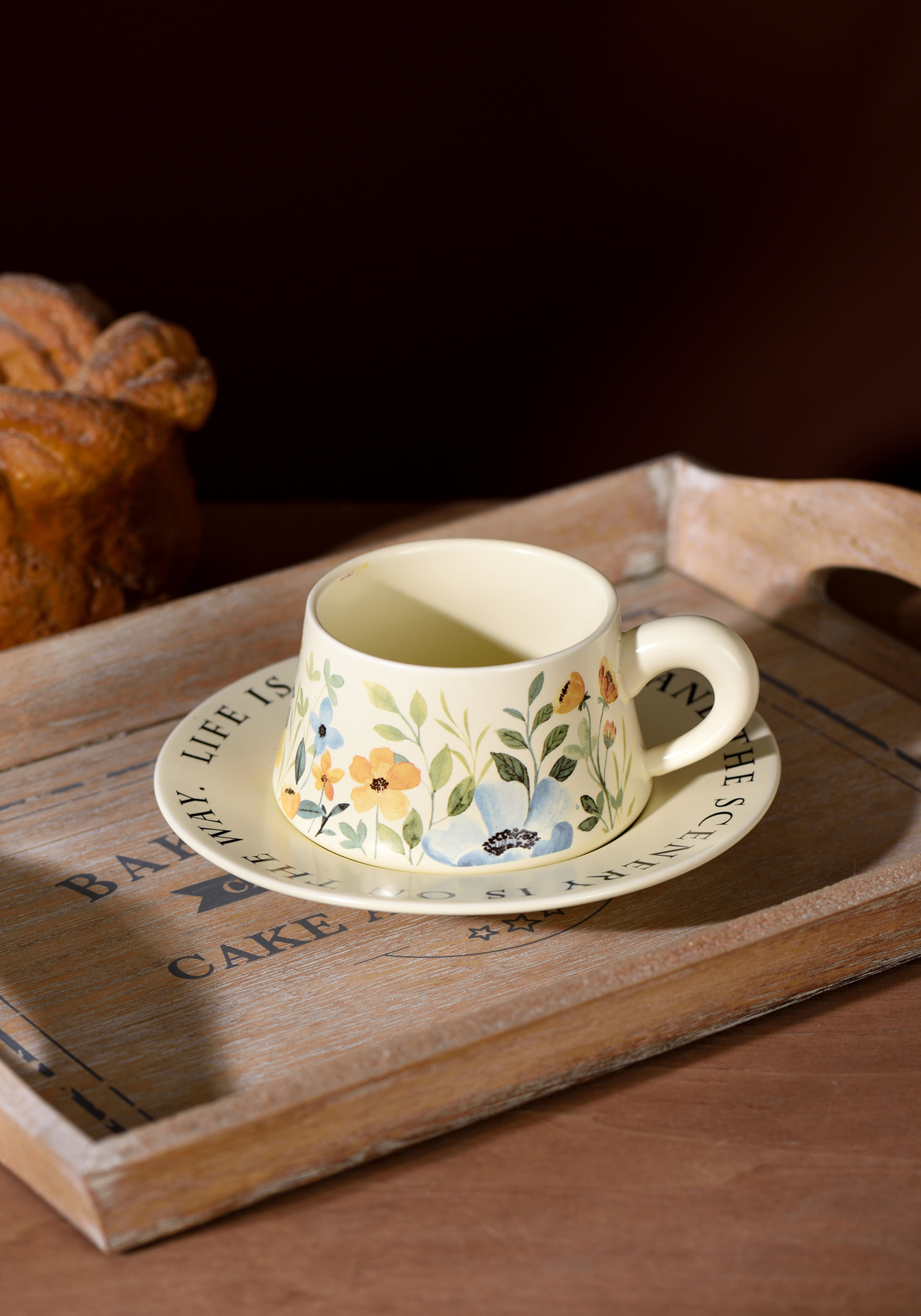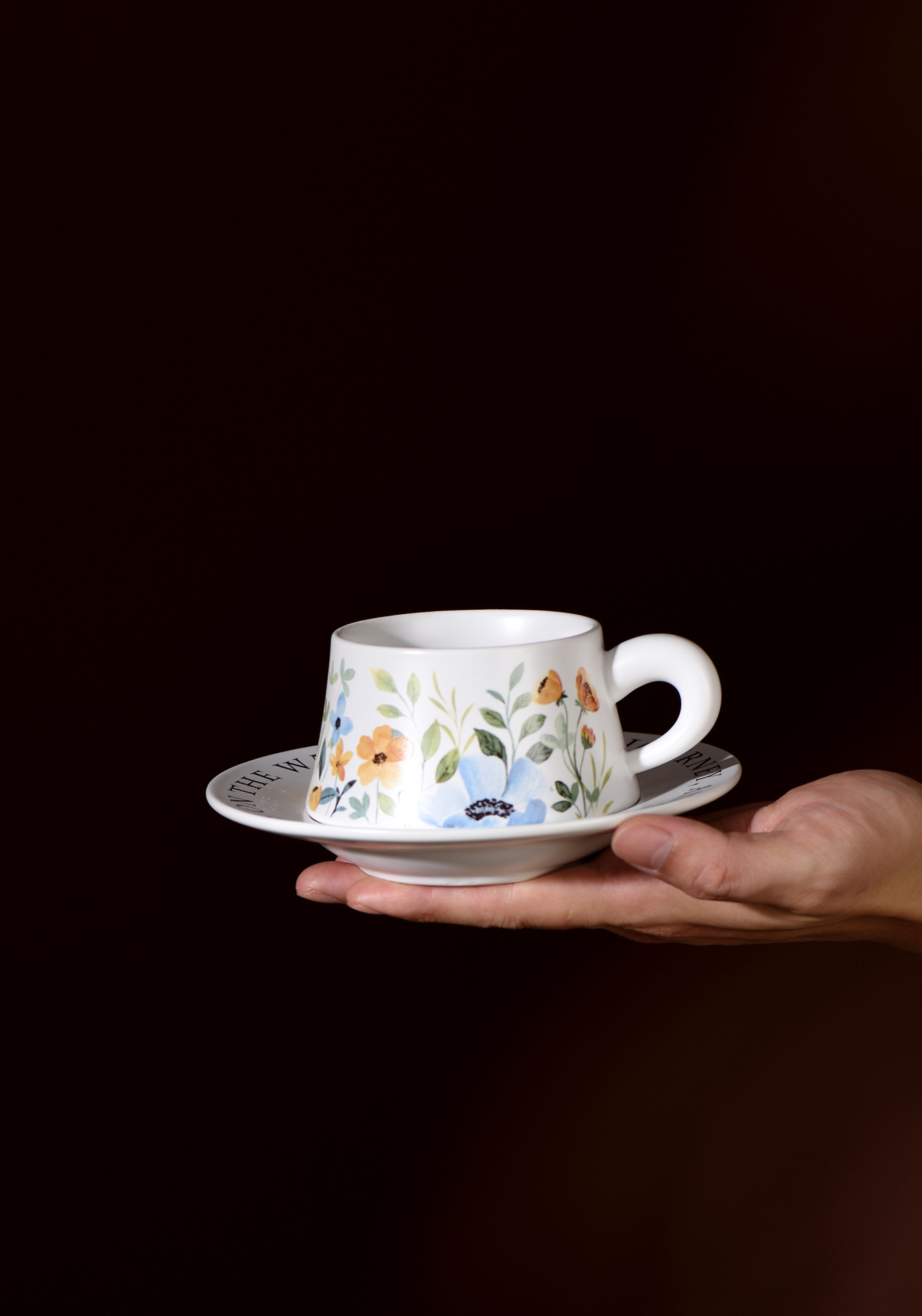 Luz lujosa francesa romántica pequeña flor de cerámica taza de café plato casual té de la tarde café nuevo conjunto de tazas de agua de porcelana hueso