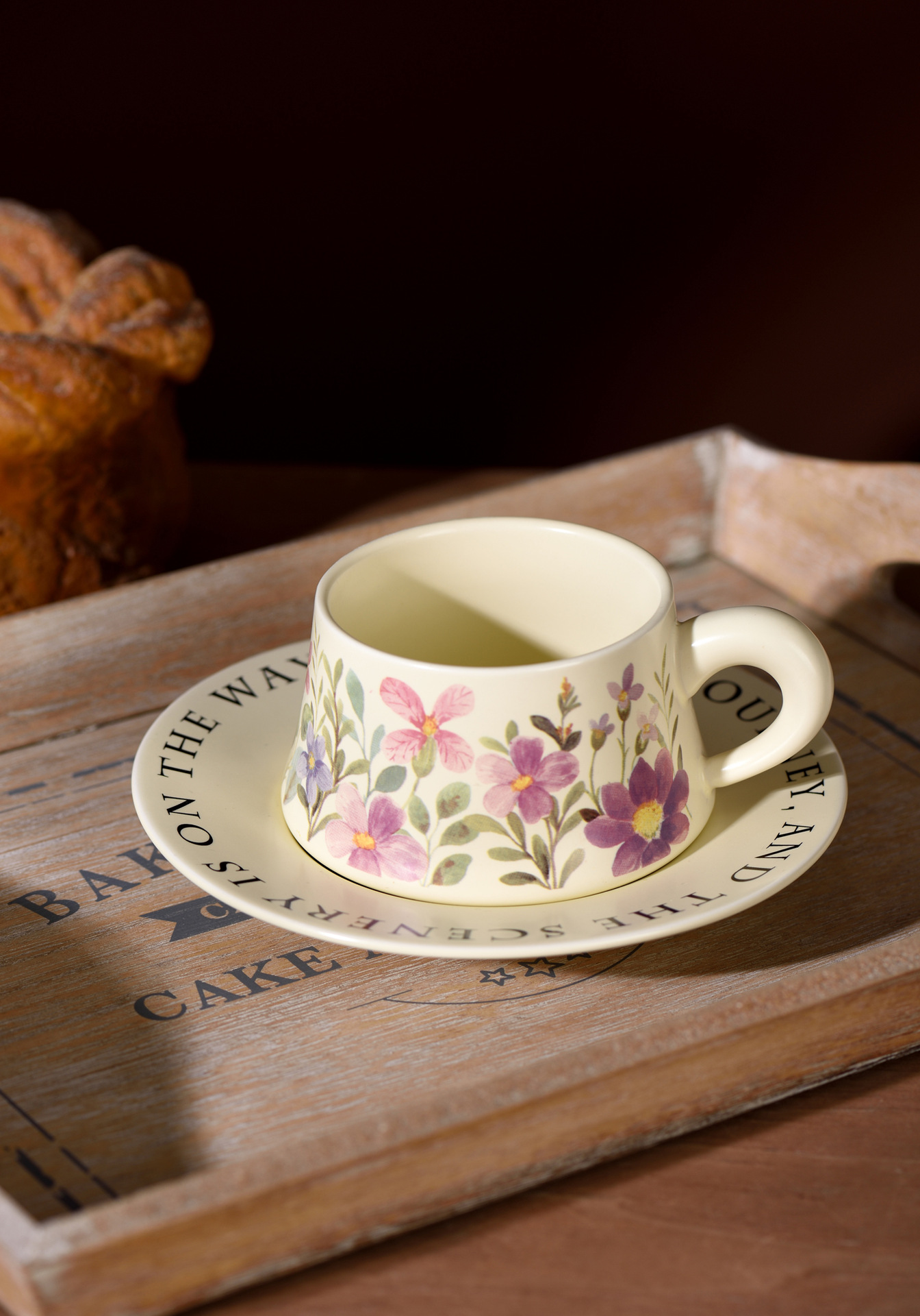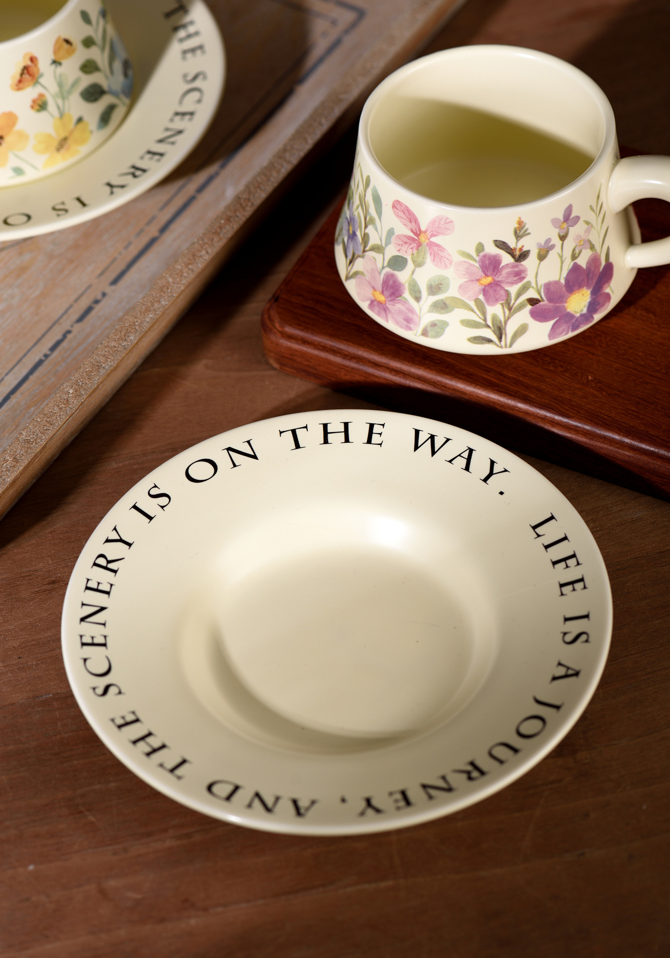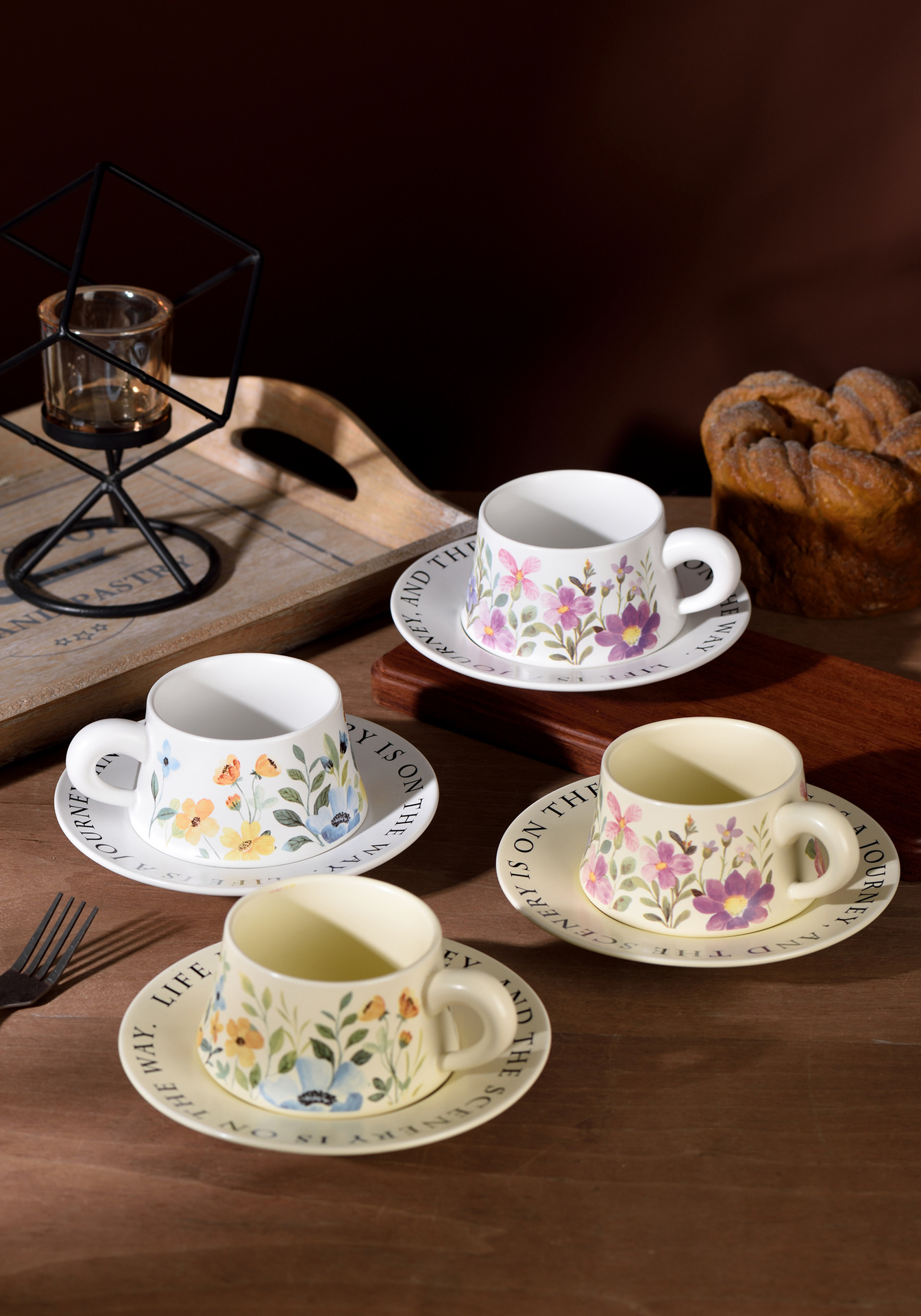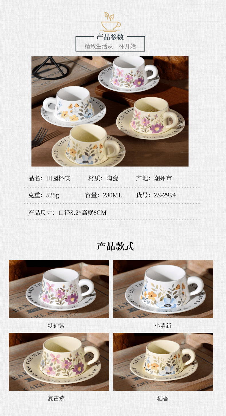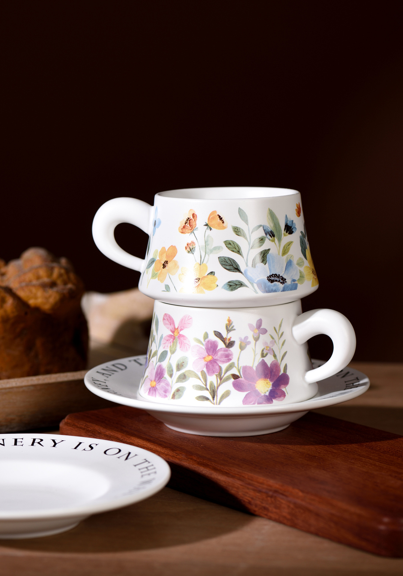 Luz lujosa francesa romántica pequeña flor de cerámica taza de café plato casual té de la tarde café nuevo conjunto de tazas de agua de porcelana hueso