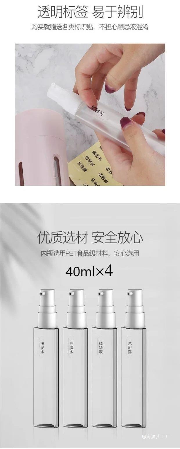 Botella de viaje de viaje, paquete de cosméticos de viaje de negocios, botella vacía de loción de presión 4 - en - 1, portátil y caliente de embarque.