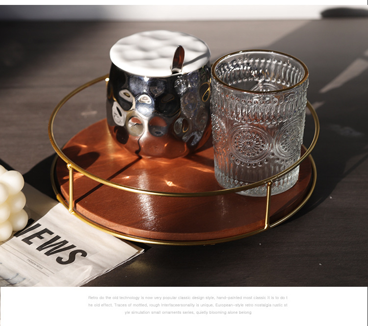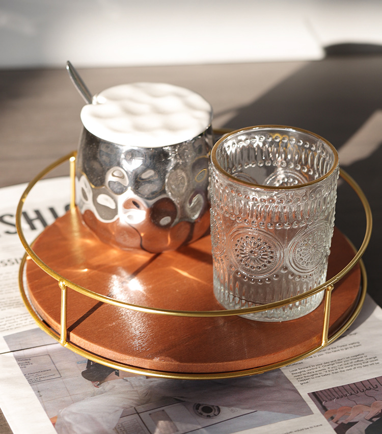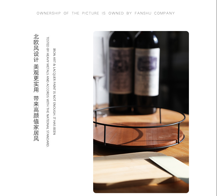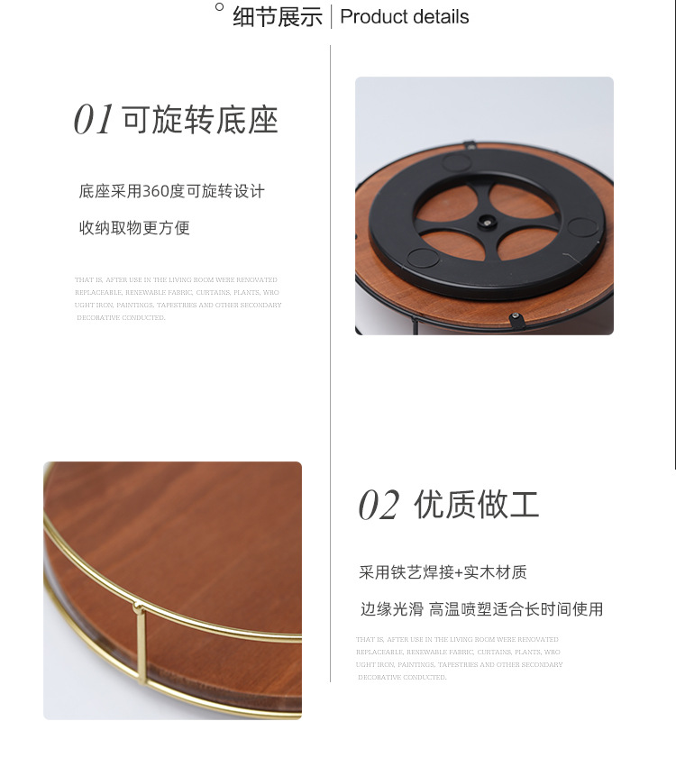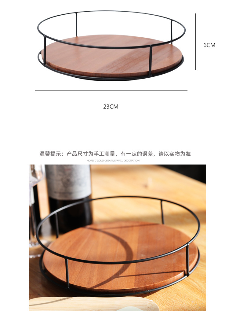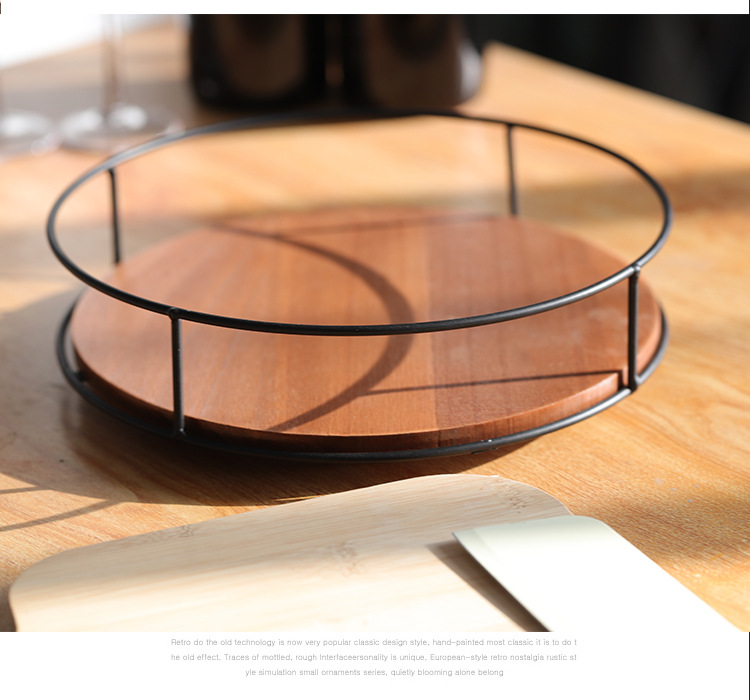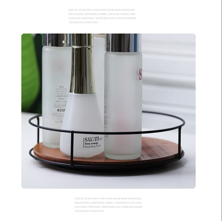 Soporte de almacenamiento de madera maciza de suministro directo de fábrica, estante de acabado de hierro, tanque de botella de condimento de escritorio, bandeja giratoria para cosméticos