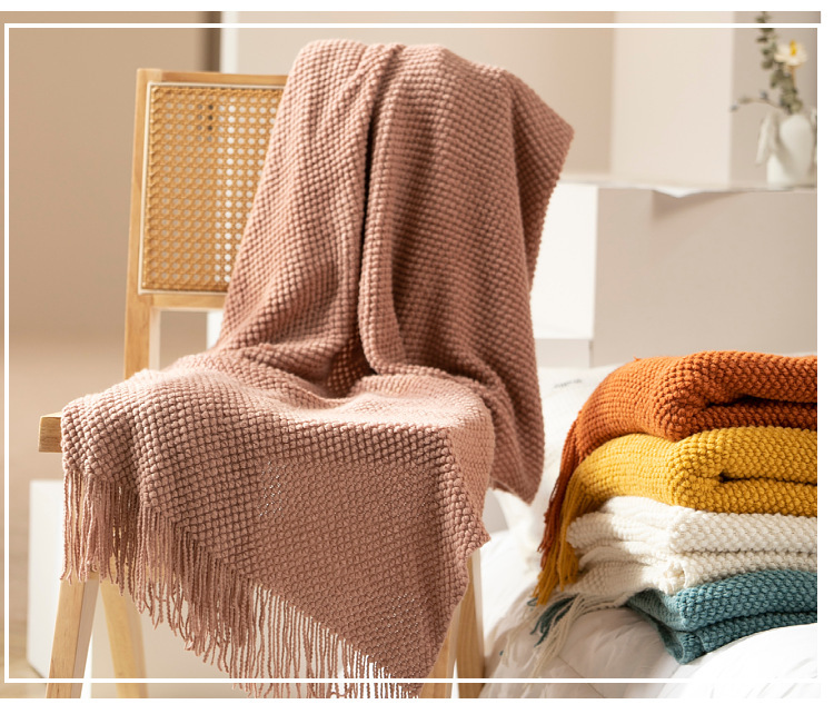Color sólido estilo nórdico retro dormitorio sofá mantas de punto de oficina siesta mantas mantas de aire acondicionado mantas