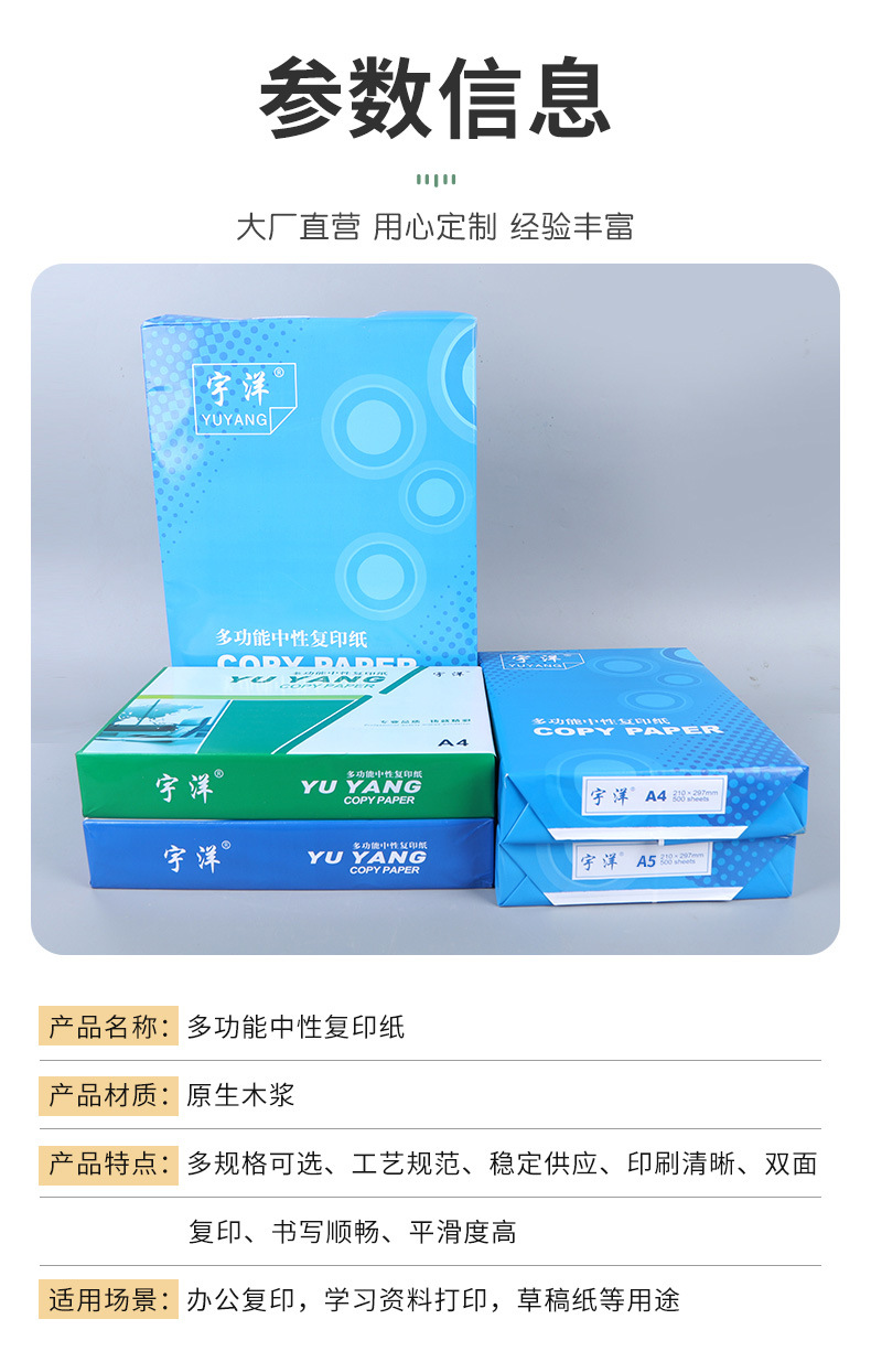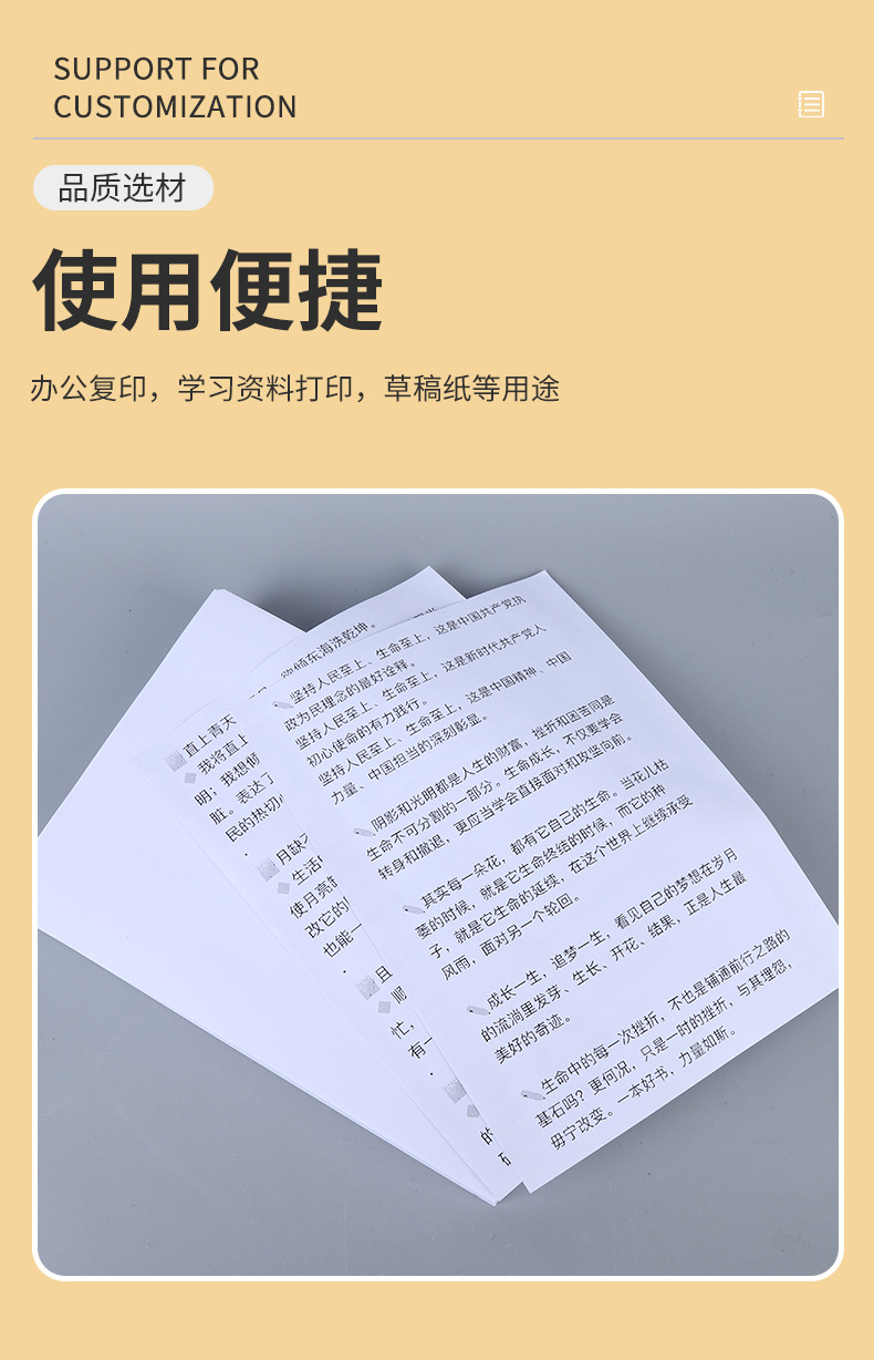 | Especificaciones | Papel de copia A4,Papel de copia A4 (alta calidad),Papel de copia A4 (80g),Papel de copia A5 (1000 hojas),A3 papel de copia,B5 papel de copia,B4 papel de copia,16K papel de copia,8K papel de copia |