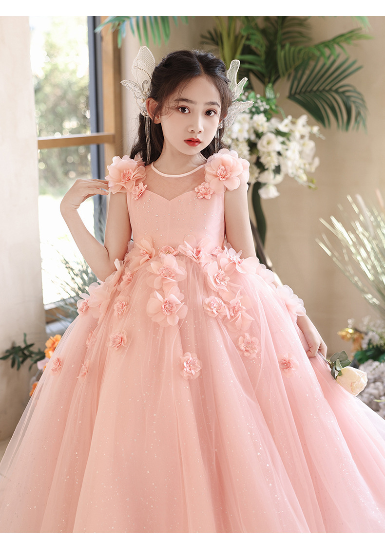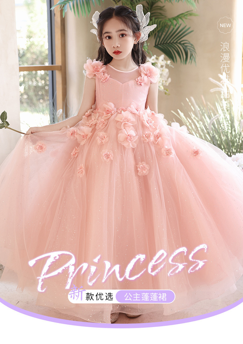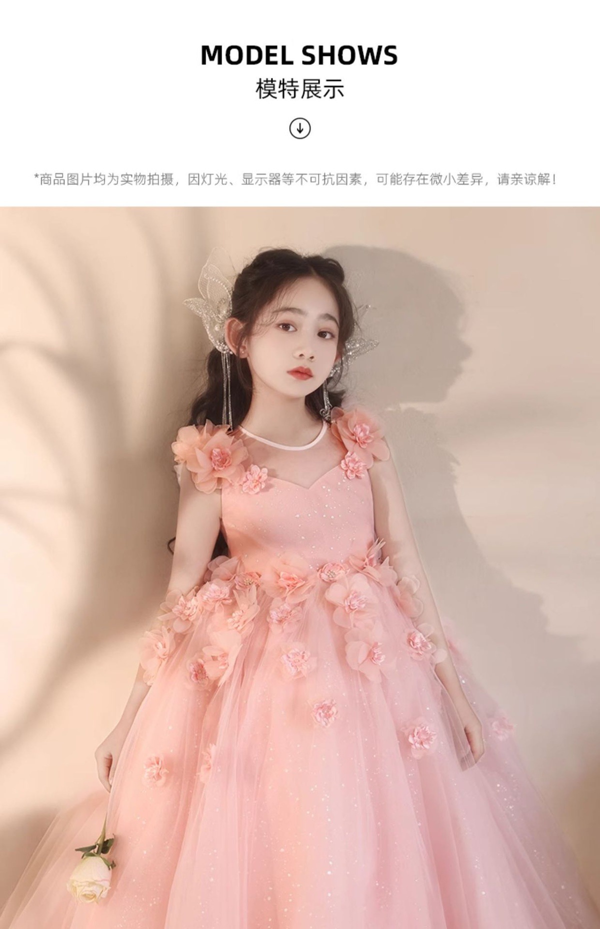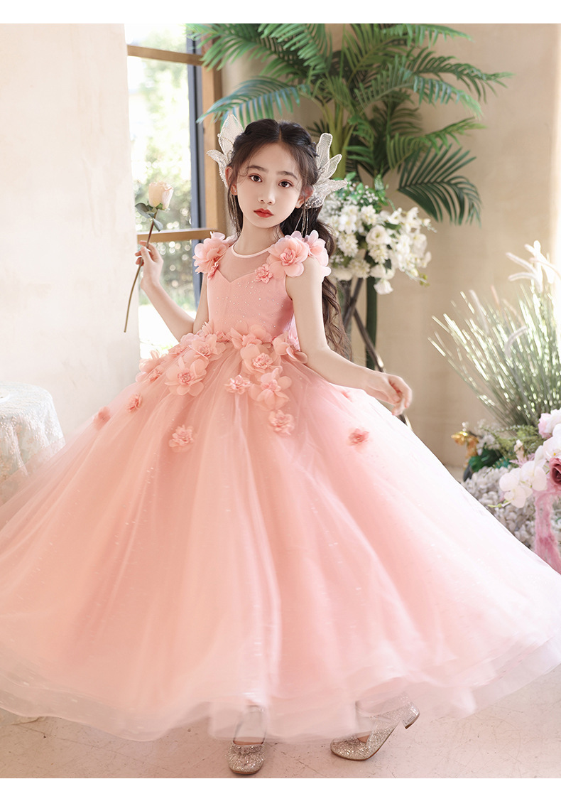 Vestido de princesa para niñas, modelo nuevo de alta gama, rosa floral, para damitas de honor, presentaciones de piano, fabricante.