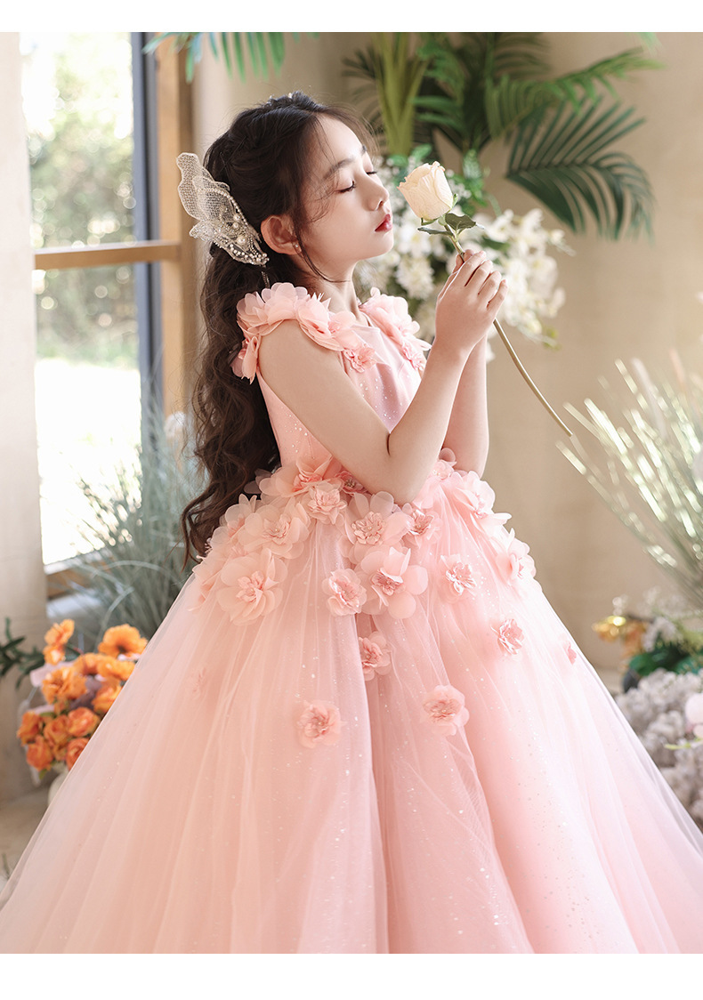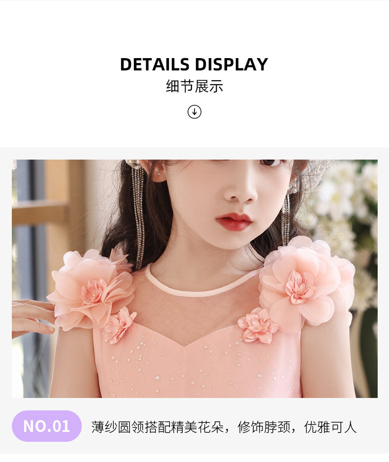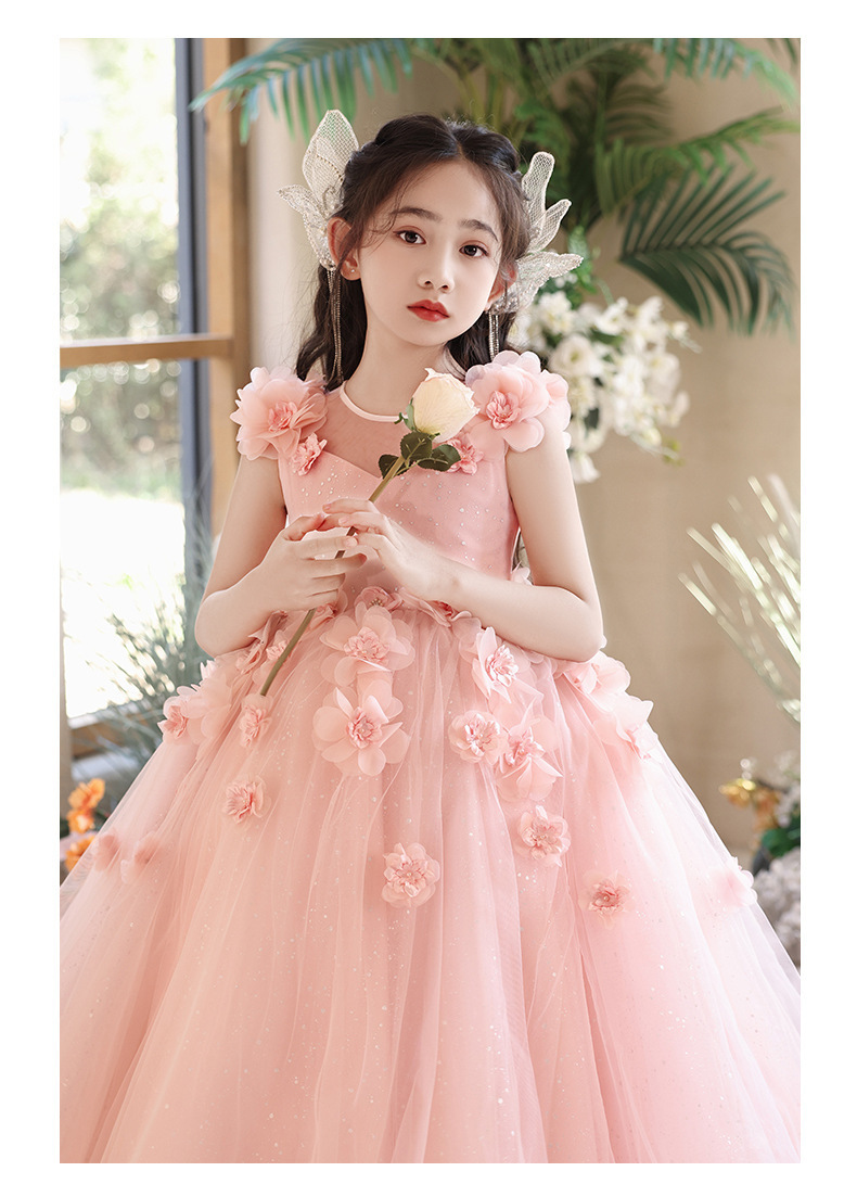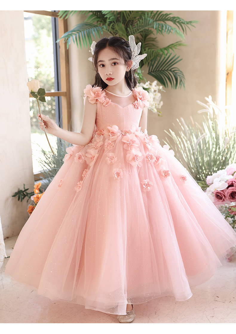 Vestido de princesa para niñas, modelo nuevo de alta gama, rosa floral, para damitas de honor, presentaciones de piano, fabricante.