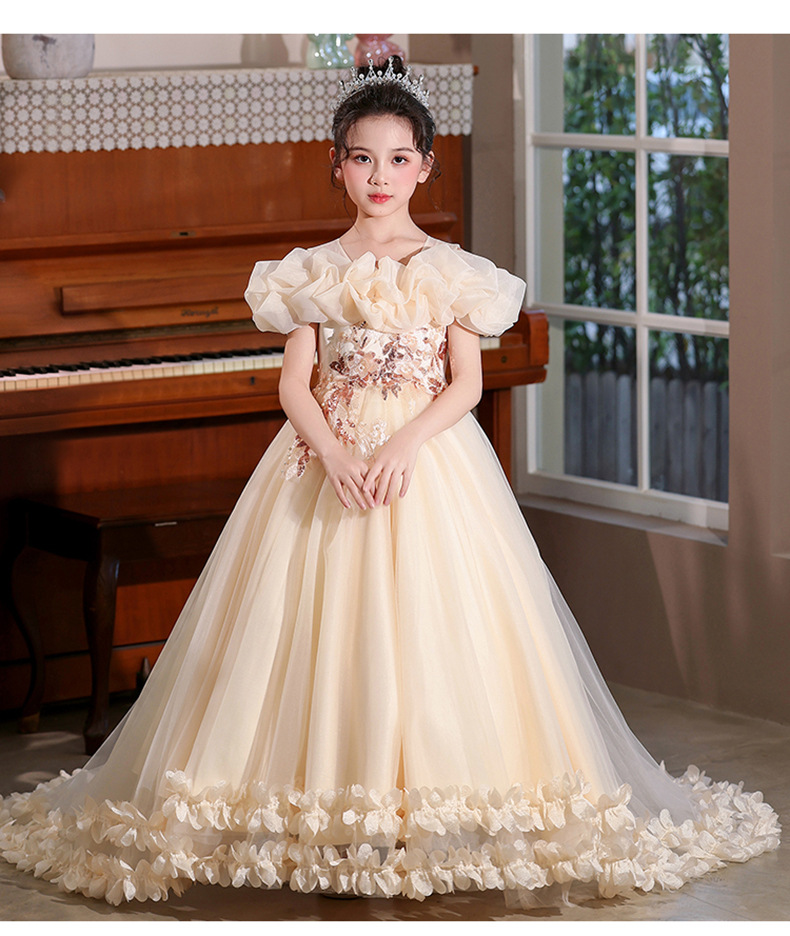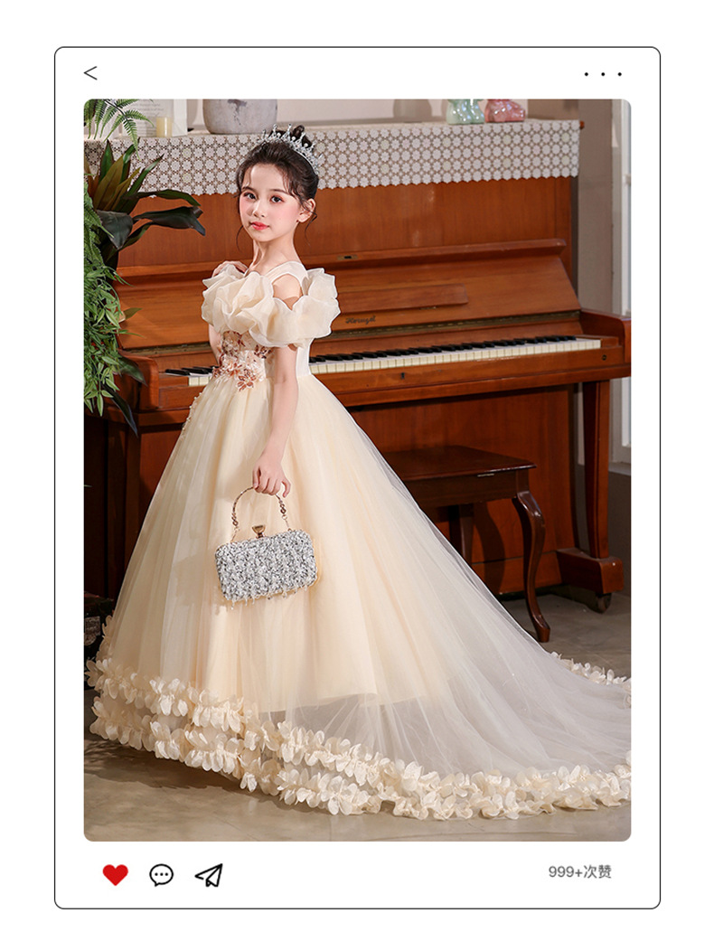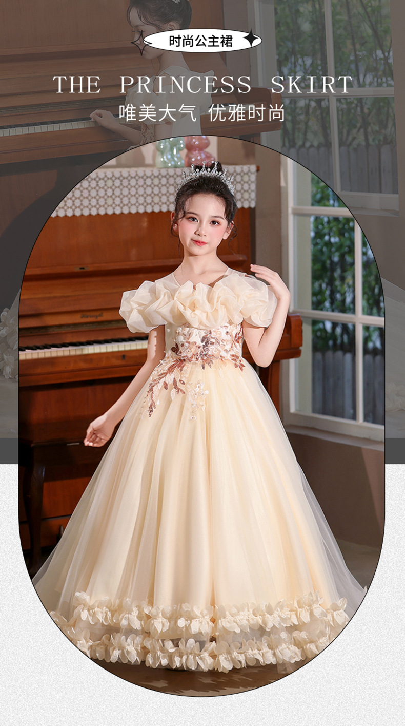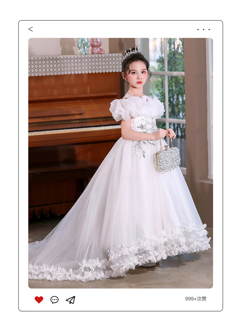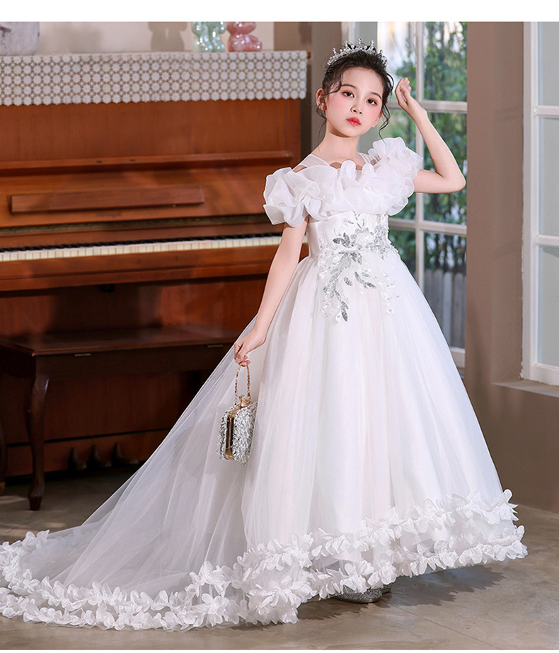 Vestido transfronterizo de estilo europeo y americano, vestido de princesa bordado largo de cola para niñas, traje de piano, pasarela, estilo de lujo ligero de alta gama