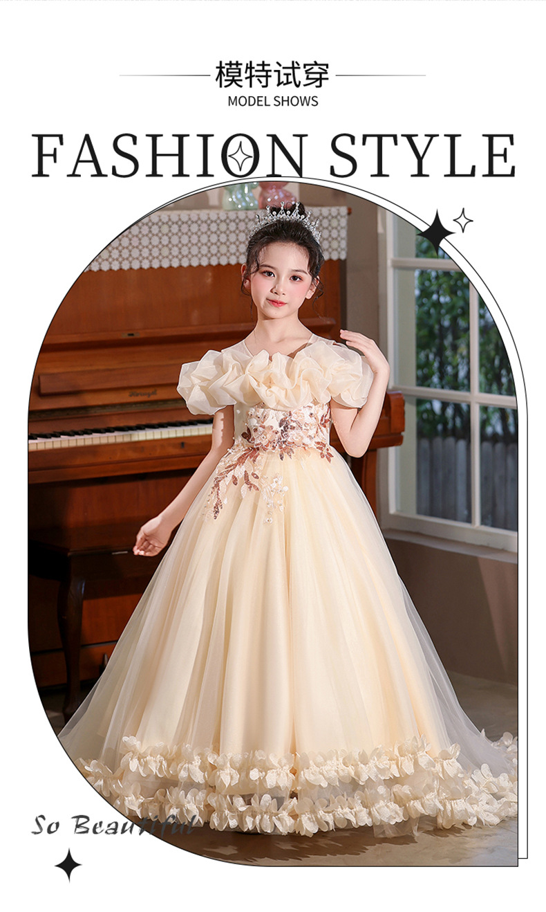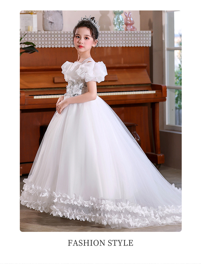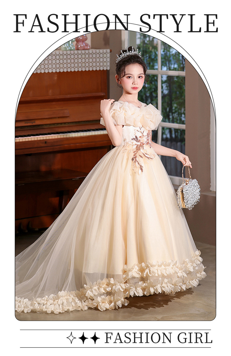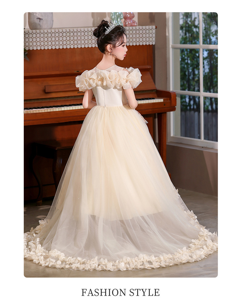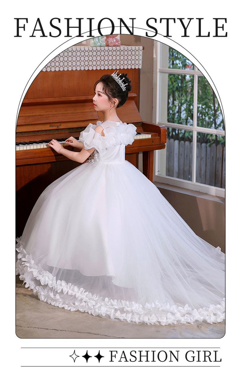 Vestido transfronterizo de estilo europeo y americano, vestido de princesa bordado largo de cola para niñas, traje de piano, pasarela, estilo de lujo ligero de alta gama
