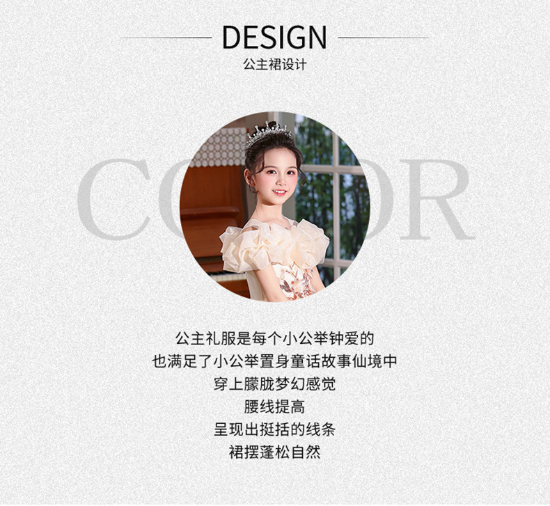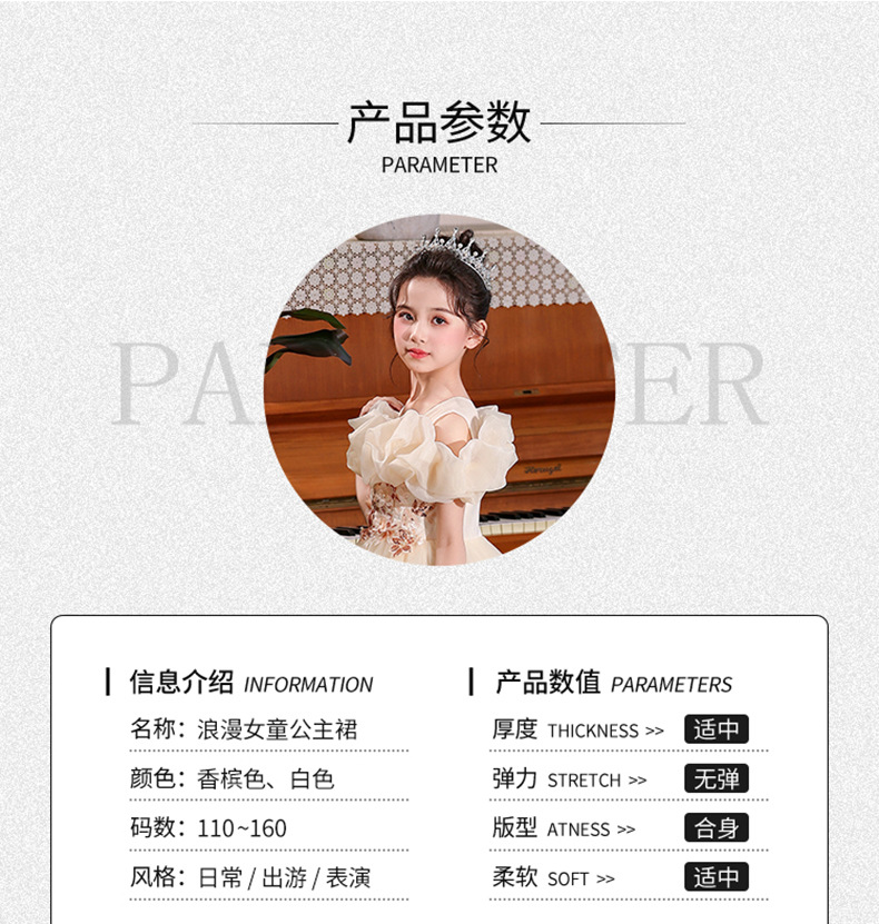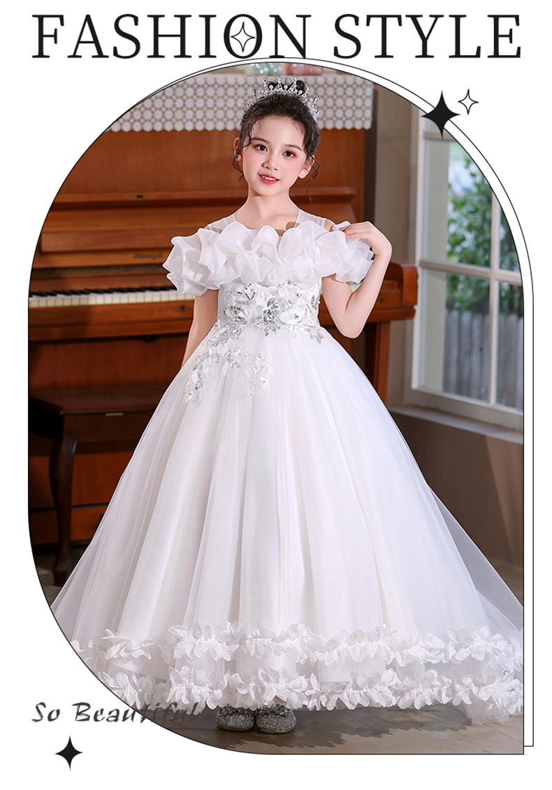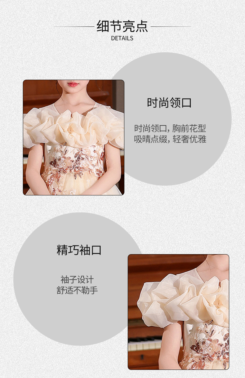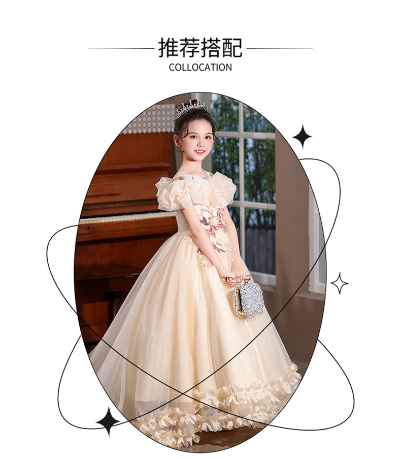 Vestido transfronterizo de estilo europeo y americano, vestido de princesa bordado largo de cola para niñas, traje de piano, pasarela, estilo de lujo ligero de alta gama